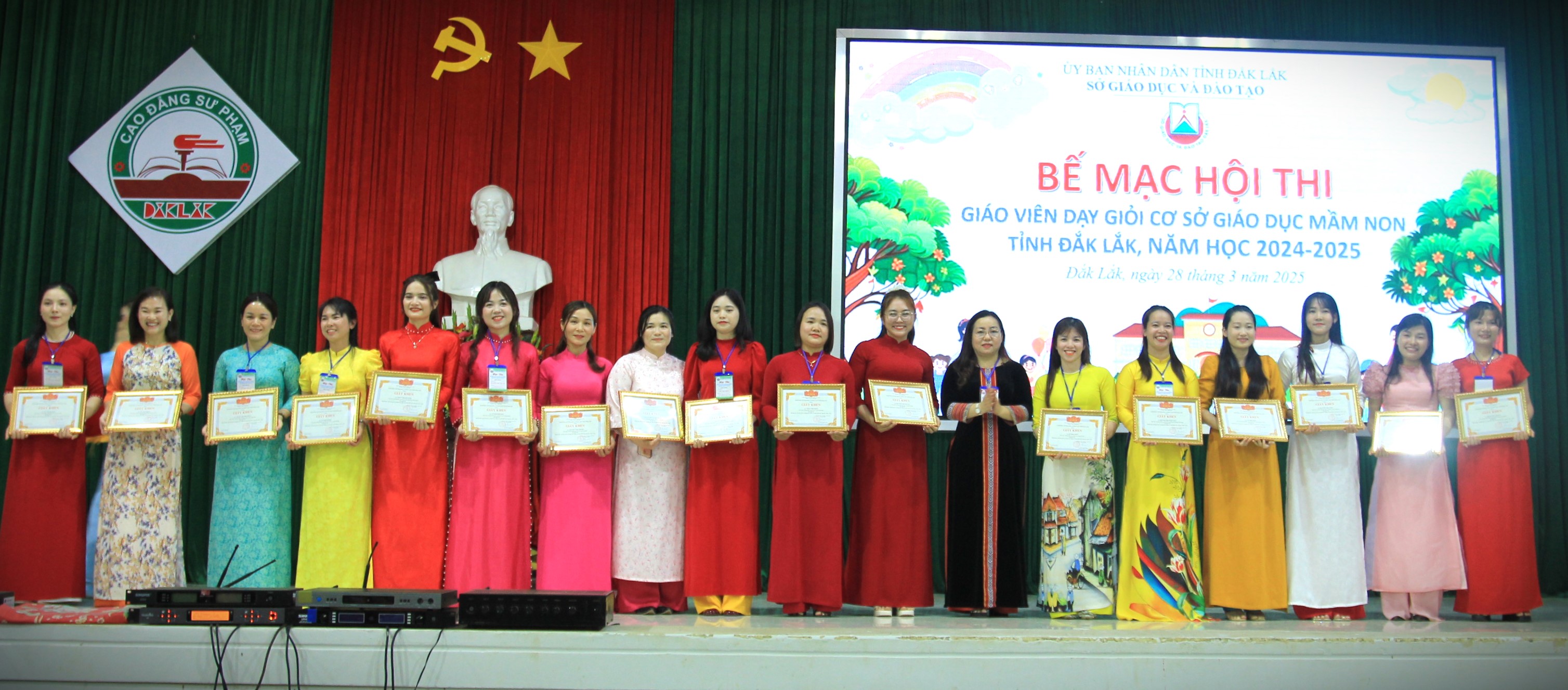 Hội thi diễn ra an toàn, nghiêm túc, đúng quy chế. Kết thúc hội thi, Ban Tổ chức đã trao Chứng nhận đạt danh hiệu “Giáo viên dạy giỏi cơ sở giáo dục mầm non tỉnh Đắk Lắk, năm học 2024-2025” cho 311 thí sinh; trao tặng Giấy khen cho 176 cá nhân đạt thành tích xuất sắc tại Hội thi, gồm: 17 giải Nhất, 34 giải Nhì, 46 giải Ba và 79 giải Khuyến khích.