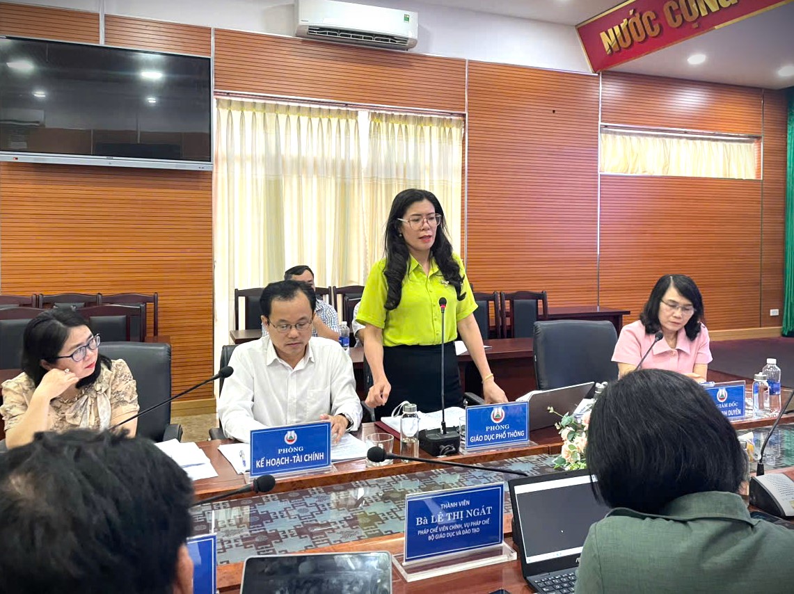 Bà Lê Thị Thảo – Trưởng phòng Giáo dục Phổ thông, Sở GDĐT Đắk Lắk báo cáo tại buổi làm việc