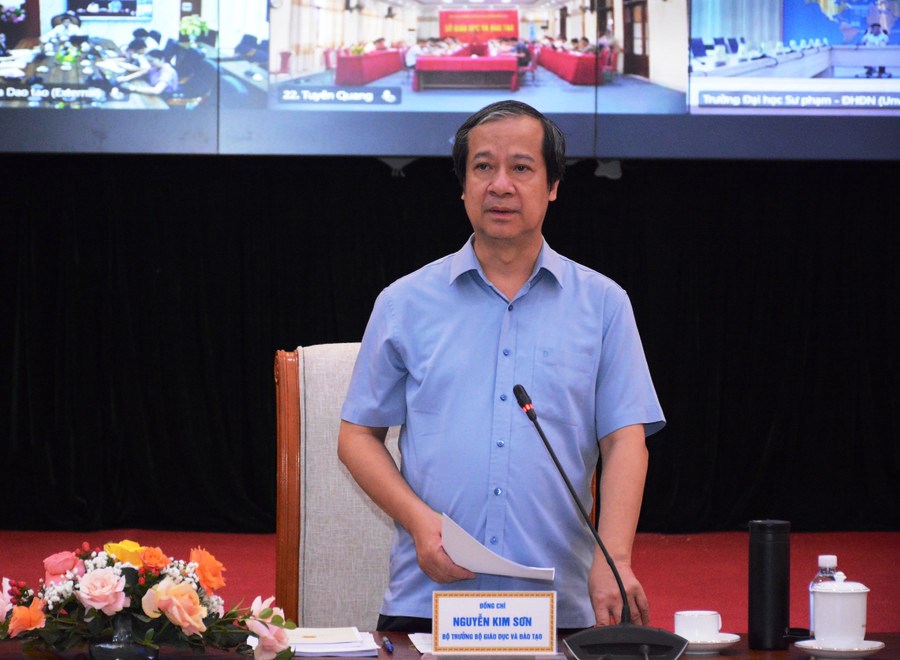 Bộ trưởng Bộ GDĐT Nguyễn Kim Sơn phát biểu khai mạc Hội nghi (Ảnh: Báo GD&TĐ)