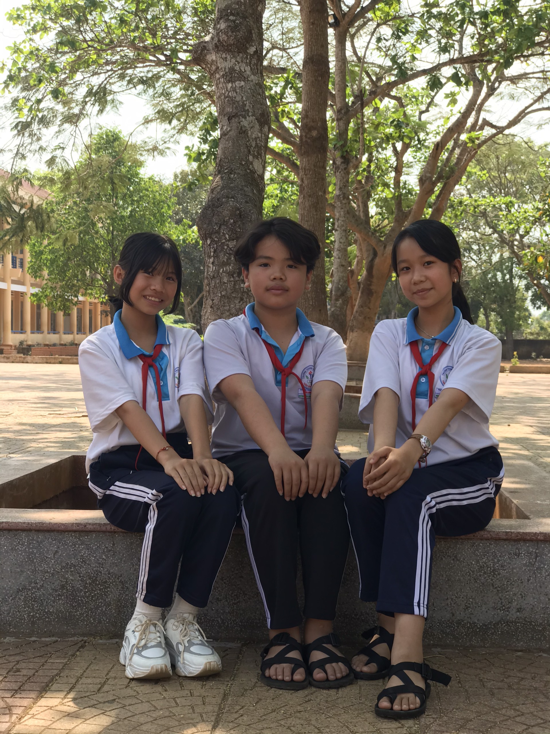 Ba em học sinh Cát Tường, Anh Quốc, Việt Mỹ (từ trái sang)