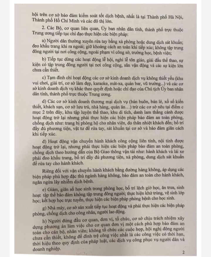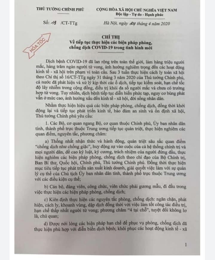 Chỉ thị 19/CT-TTg về tiếp tục thực hiện các biện pháp phòng, chống dịch Covid-19 trong tình hình mới