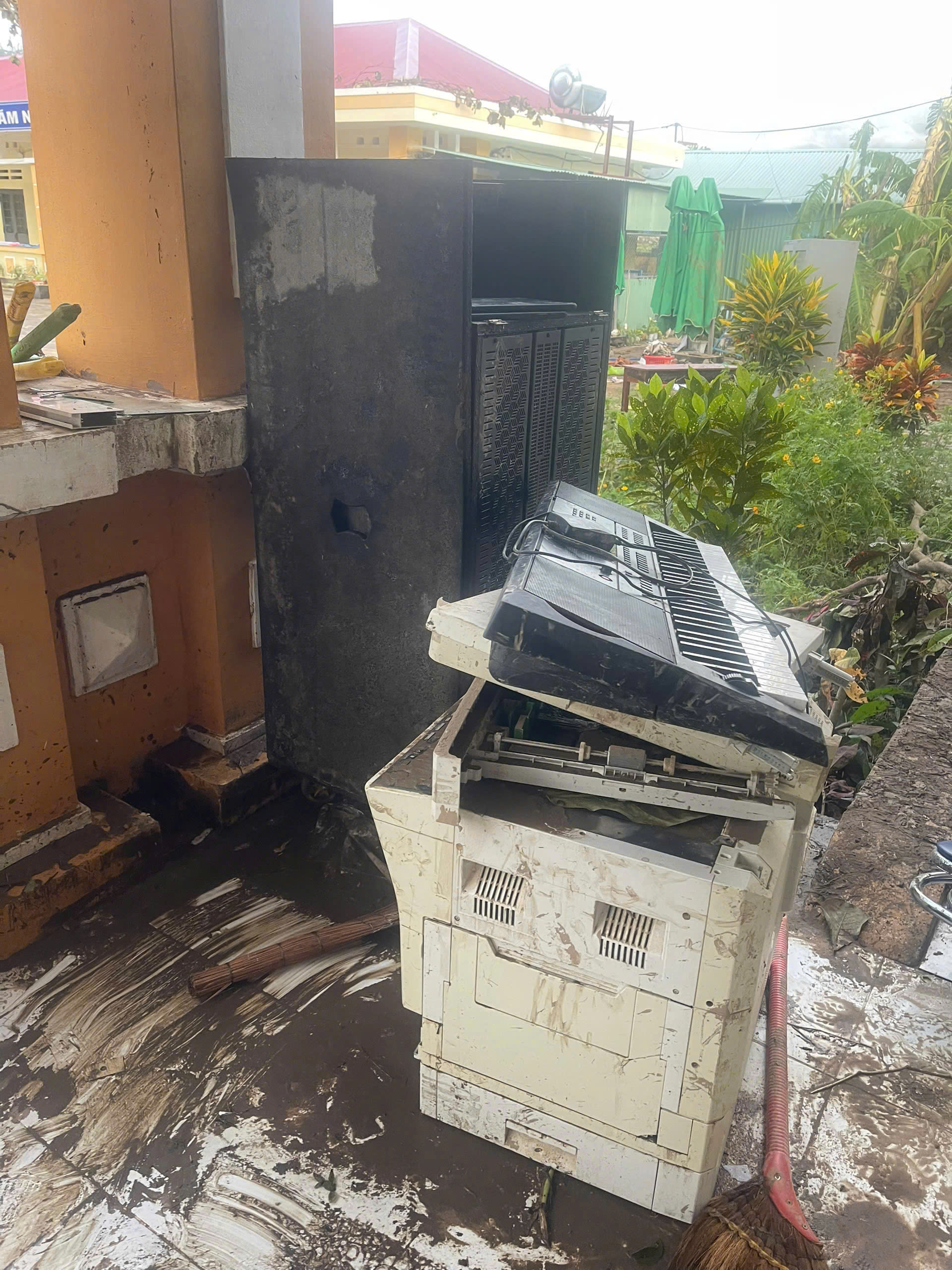 Nhiều máy móc, thiết bị bị hư hỏng do bão 13 gây ra tại trường Tiểu học Phú Mỡ