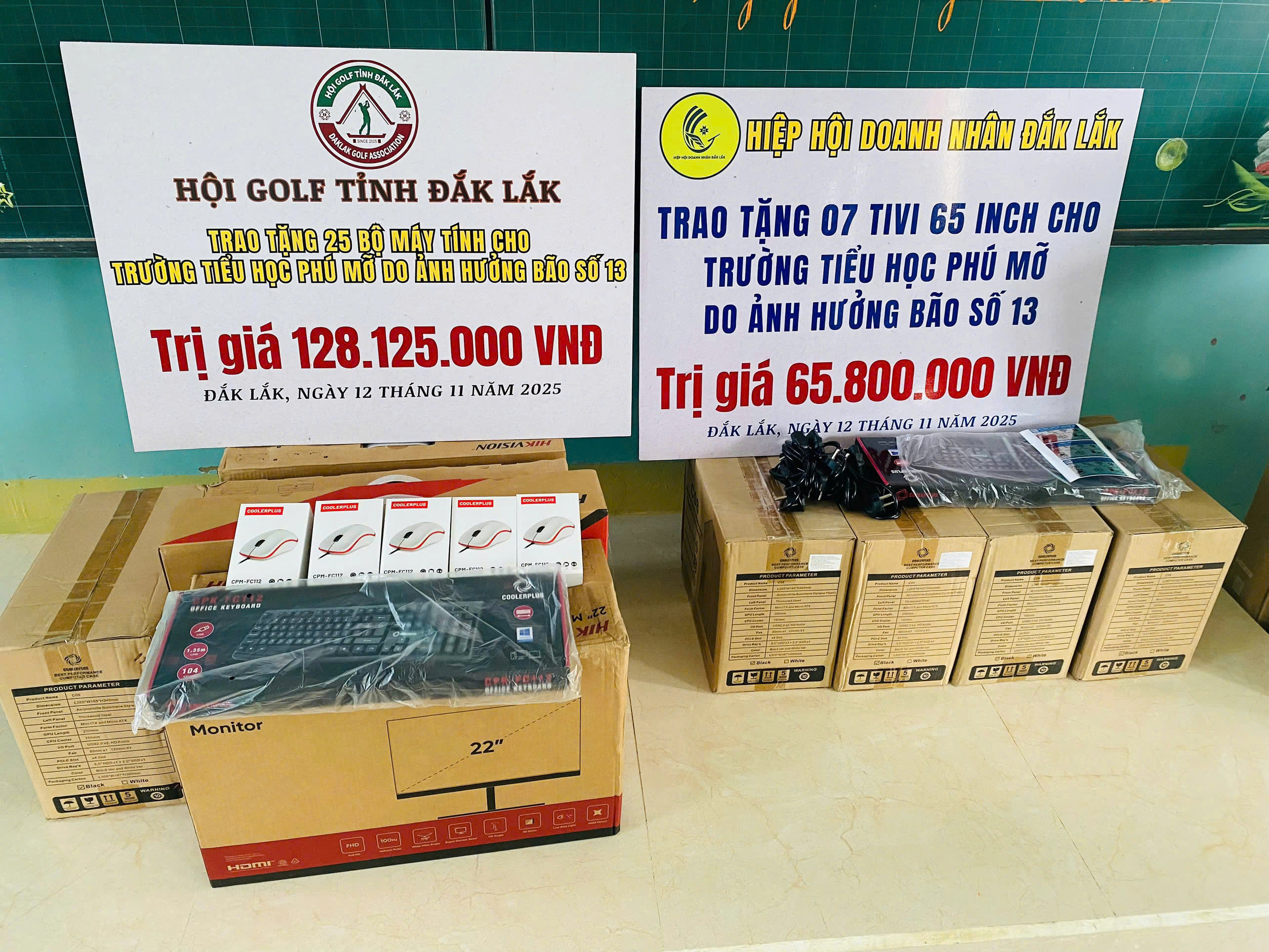 Ngày 12/11/2025, Hiệp hội Doanh nhân Đắk Lắk và Hội Golf Đắk Lắk đã tổ chức một chương trình ý nghĩa nhằm giúp đỡ các trường học bị thiệt hại nặng do cơn bão số 13 gây ra. Chương trình đã trao tặng 32 máy vi tính, trị giá hơn 193.925.000 đồng (trong đó Hiệp hội doanh nhân Đắk Lắk tặng 07 máy vi tính trị gia 65.800.000 đồng, Hội Golf Đắk Lắk trao tặng 25 máy vi tính trị giá 128.125.000 đồng), hỗ trợ cho việc dạy và học của trường Tiểu học Phú Mỡ khắc phục hậu quả do bão số 13 gây ra, góp phần khôi phục và duy trì, nâng cao chất lượng giáo dục.