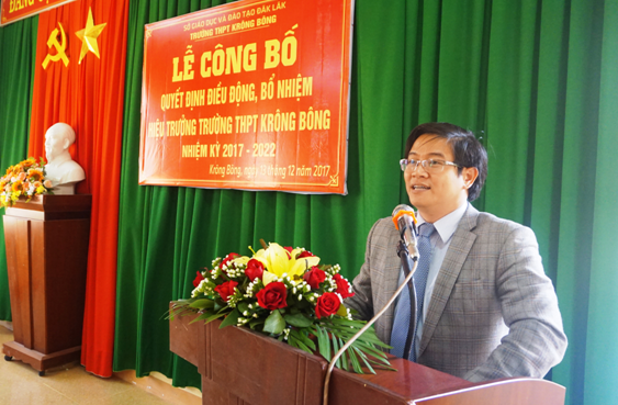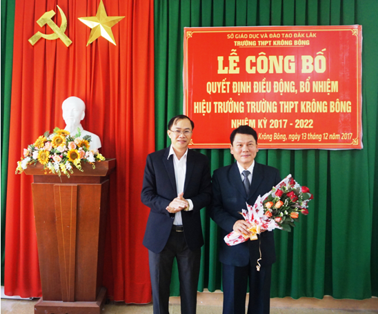 Sáng cùng ngày, tại Trường THPT Krông Bông, Sở GDĐT đã tổ chức lễ công bố quyết định điều động, bổ nhiệm Hiệu trưởng nhà trường đối với ông Dương Kim Thạch – Hiệu trưởng Trường THPT Trần Hưng Đạo.