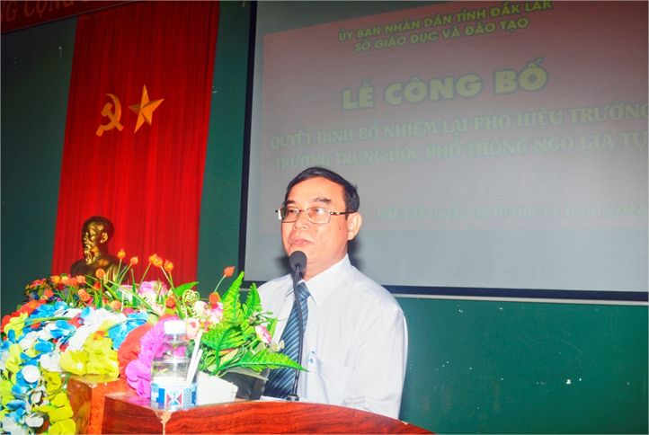 Phát biểu tại buổi lễ, ông Bùi Hữu Thành Cát – Phó Giám đốc Sở chúc mừng bà Phạm Thị Dinh được tín nhiệm bổ nhiệm lại chức danh Phó Hiệu trưởng và rất mong đồng chí sẽ có nhiều sức khỏe, nhiều sáng tạo với những chiến lược, tầm nhìn, giá trị mới cho công việc của mình, góp phần xây dựng trường THPT Ngô Gia Tự ngày càng vững mạnh.