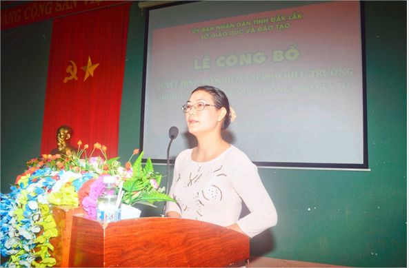 Tại buổi lễ, ông Nguyễn Hữu Quát – Trưởng phòng Tổ chức cán bộ Sở GDĐT đã công bố Quyết định bổ nhiệm lại chức danh Phó Hiệu trưởng Trường THPT Ngô Gia Tự đối với bà Phạm Thị Dinh, thời hạn giữ chức vụ là 05 năm, kể từ ngày 14/10/2018.