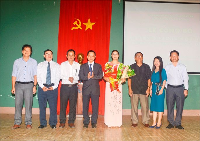ÔngBùi Hữu Thành Cát – Phó Giám đốc Sở GDĐT trao Quyết định bổ nhiệm lại cho bà Phạm Thị Dinh