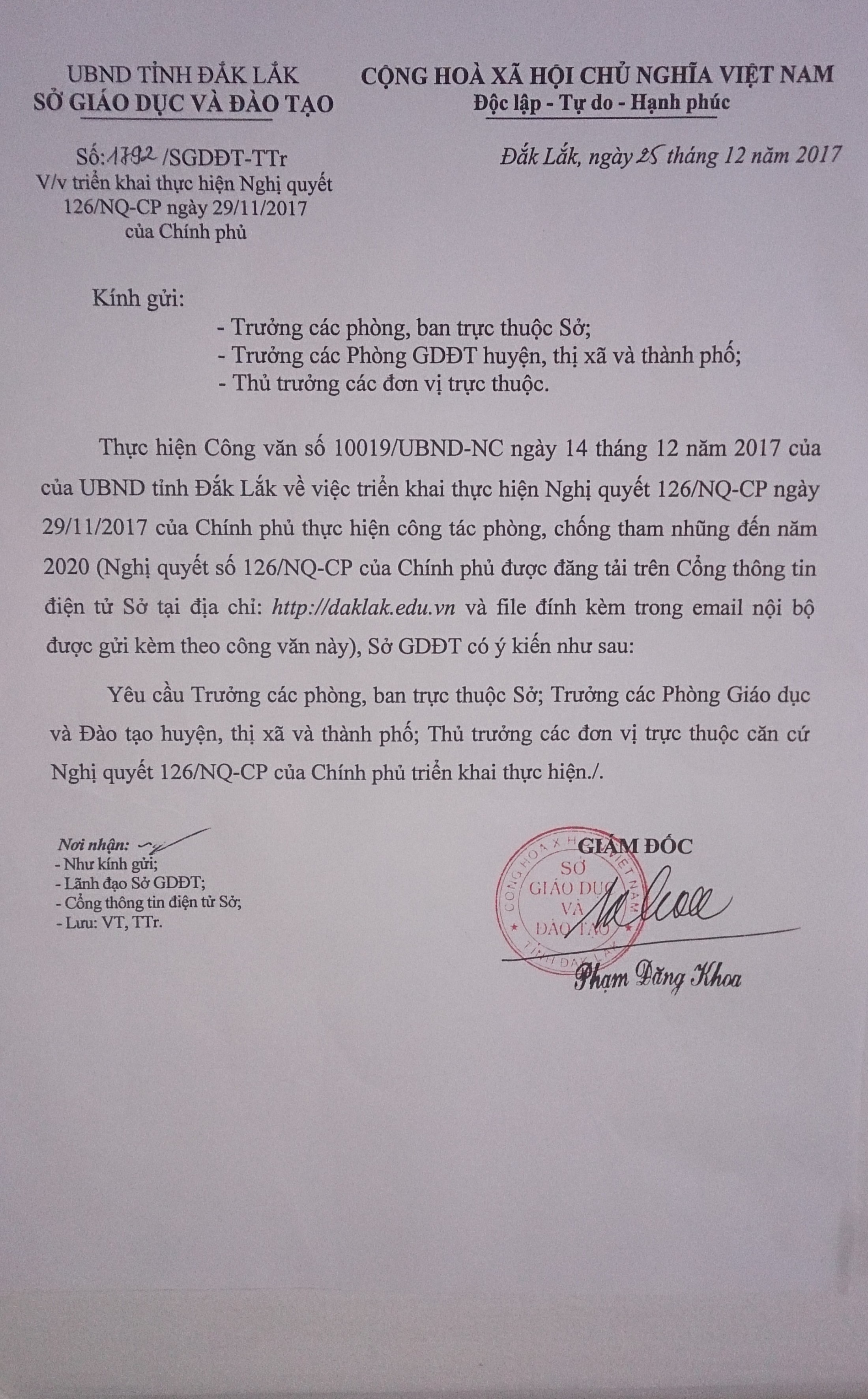 Công văn triên khai thực hiện Nghị quyết 126/2017NQ-CP ngày 29/11/2017 của Chính phủ