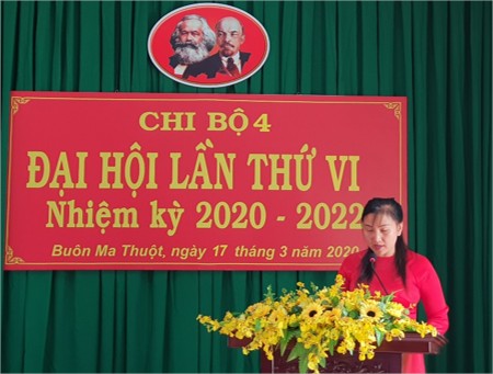 Với số lượng đảng viên là 04 đồng chí, nên Chi bộ 4 chỉ tiến hành bầu Bí thư Chi bộ nhiệm kỳ 2020-2022. Kết quả đồng chí Phạm Trịnh tái đắc cử với tỷ lệ phiếu bầu 100%.