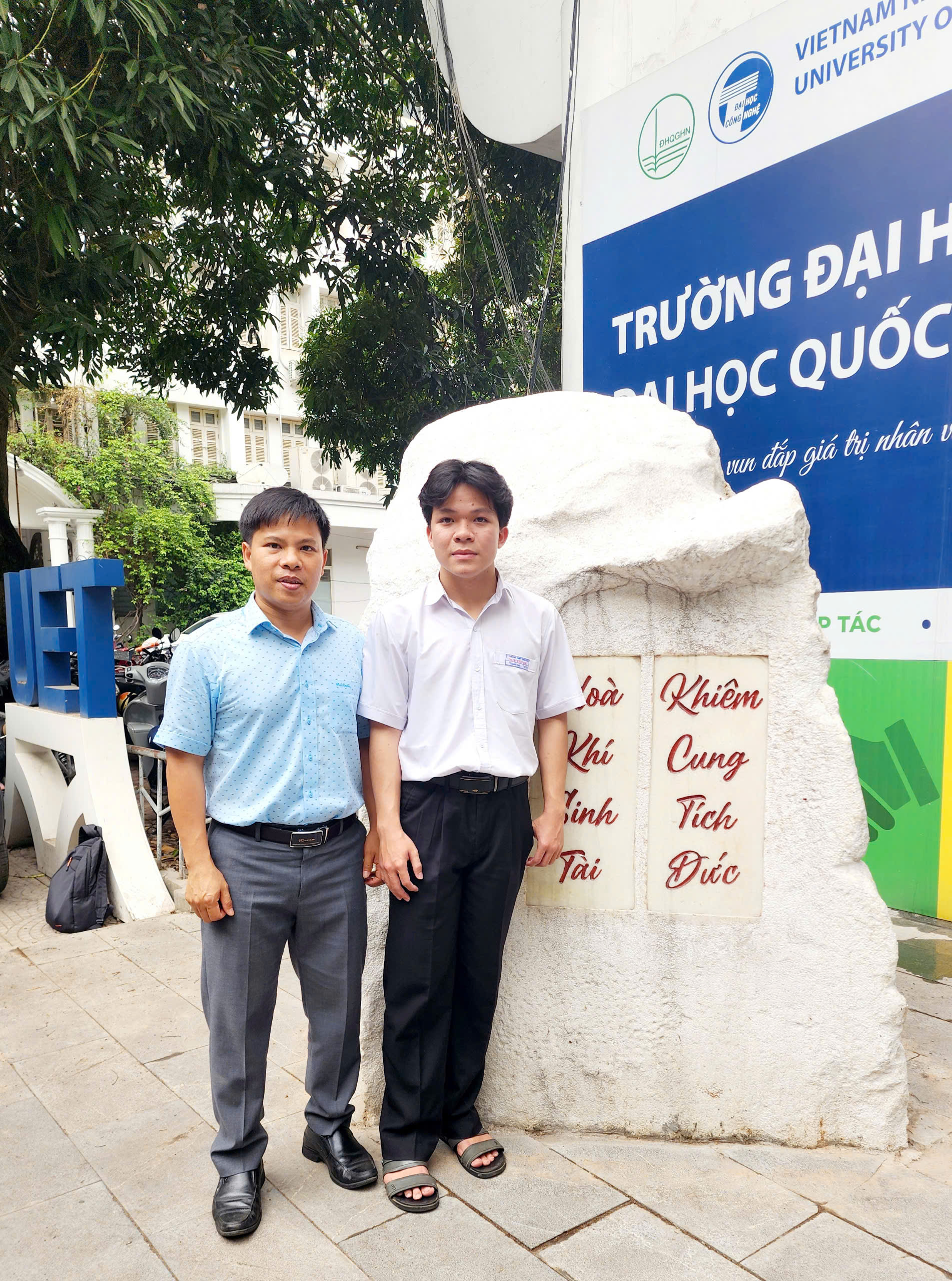 Võ Thanh Hải và thầy giáo hướng dẫn Lê Quang Nhân (ảnh: QN)