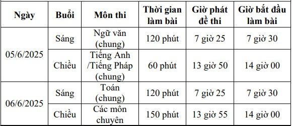 Kỳ thi được tổ chức trong 02 ngày, từ ngày 05 đến ngày 06/6/2025 tại các huyện, thị xã, thành phố trên địa bàn tỉnh, theo lịch cụ thể như sau: