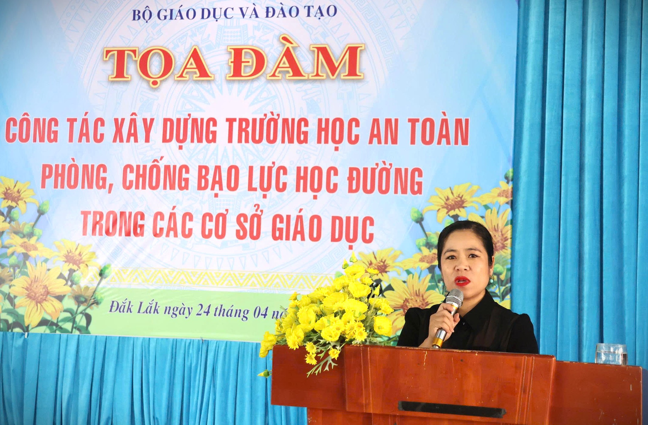 Ngoài việc khảo sát, giám sát, Đoàn công rác của Bộ GDĐT đã phối hợp với Sở GDĐT Đăk Lắk tổ chức buổi tọa đàm công tác xây dựng trường học an toàn phòng, chống bạo lực học đường (BLHĐ) trong các cơ sở giáo dục vào sáng 24/4, tại Trường THPT Buôn Ma Thuột, với sự tham gia của hơn 100 đại biểu đại diện các cơ sở giáo dục phổ thông và đại diện lãnh đạo Phòng Văn hóa - Xã hội các phường Buôn Ma Thuột, Tân An, Thành Nhất, Tân Lập, Ea Kao và xã Hòa Phú.