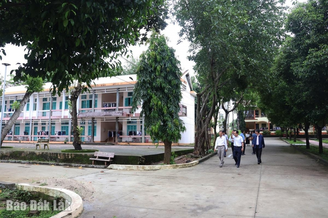 Đoàn khảo sát nắm tình hình thực tế tại ký túc xá của trường (ảnh: Báo Đắk Lắk).