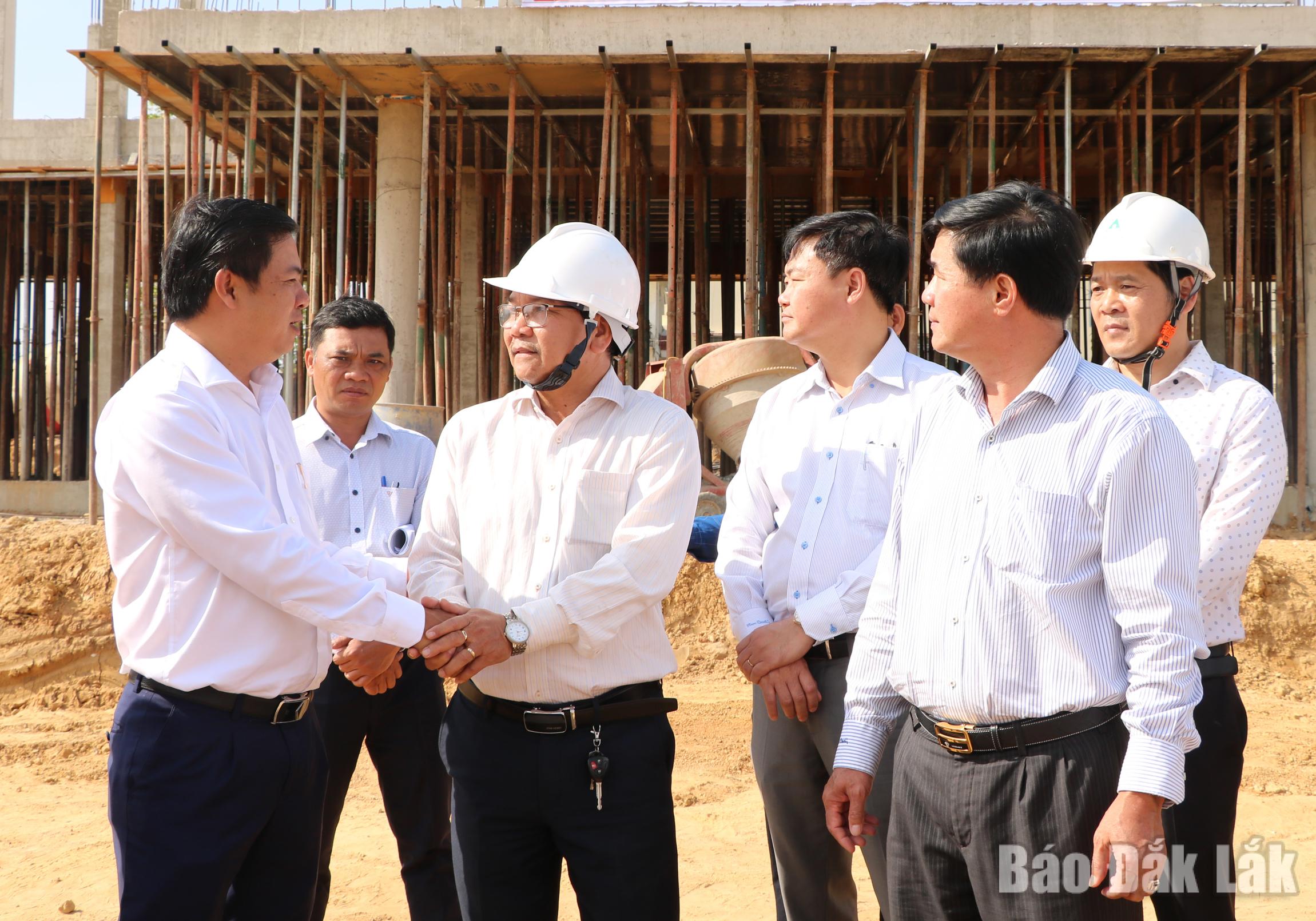 Bí thư Tỉnh ủy Lương Nguyễn Minh Triết thăm hỏi, động viên đội ngũ kỹ sư, công nhân đang thi công tại các công trình (Ảnh: Báo Đắk Lắk)