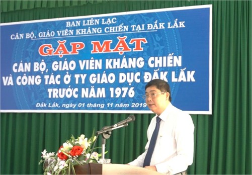 Nằm trong chuỗi các hoạt động chào mừng kỷ niệm 37 năm ngày Nhà giáo Việt Nam, sáng 01/11/2019, Sở Giáo dục và Đào tạo (GDĐT) và Ban Liên lạc cán bộ, giáo viên kháng chiến tỉnh Đắk Lắk tổ chức buổi gặp mặt cán bộ, giáo viên thời kháng chiến và công tác ở Ty Giáo dục Đắk Lắk năm học đầu tiên sau ngày giải phóng 1975-1976.