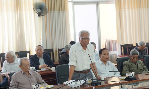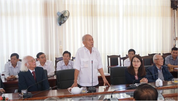 Ông Hà Ngọc Đào - Chủ tịch Hội Khuyến học, Chủ tịch Hội Giáo chức tỉnh - Trưởng Ban Liên lạc Cựu Giáo chức thời kháng chiến phát biểu