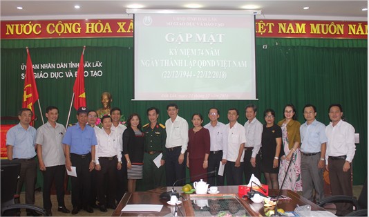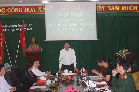Nhân kỷ niệm 74 năm Ngày thành lập Quân đội nhân dân Việt Nam (22/12/1944 - 22/12/2018) và 29 năm Ngày hội Quốc phòng toàn dân (22/12/1989 - 22/12/2018), chiều ngày 21/12/2018, Sở GDĐT tổ chức gặp mặt các đồng chí quân nhân, cựu quân nhân đã và đang công tác tại Sở GDĐT.