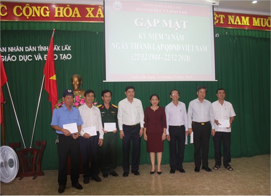 Tại buổi gặp mặt, đồng chí Phạm Đăng Khoa, Giám đốc Sở, cùng với các đồng chí trong Ban chấp hành Công đoàn Văn phòng Sở, các đồng chí là lãnh đạo các phòng chuyên môn, nghiệp vụ Sở GDĐT đã tặng quà, phát biểu nhiều lời chúc mừng ấm áp gửi đến các đồng chí đã có thời gian công tác trong quân ngũ nhân ngày truyền thống của Quân đội nhân dân Việt Nam 22/12.