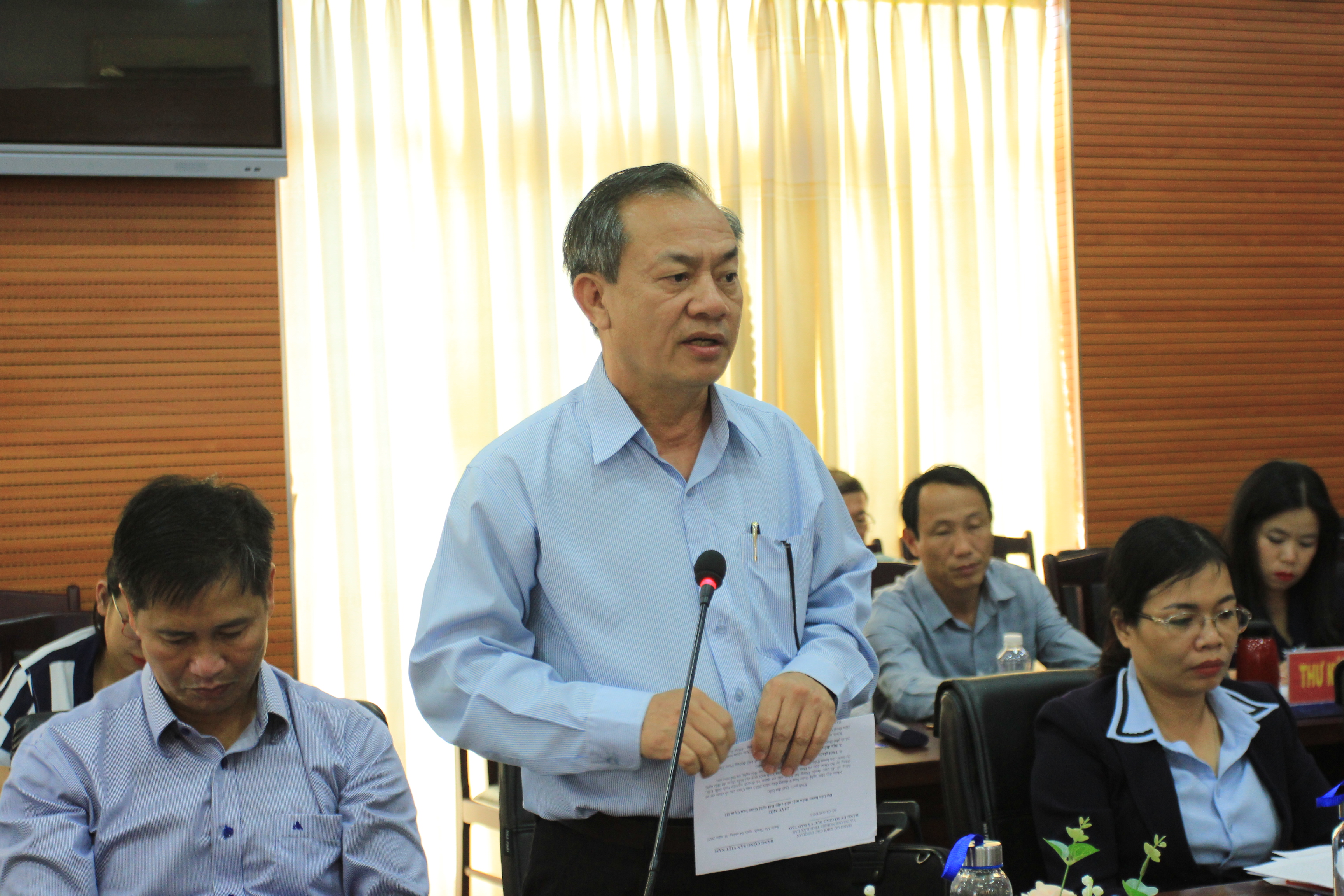 Đại diện Đảng ủy Trường Cao đẳng Văn hóa Nghệ thuật tỉnh Đắk Lắk tham gia ý kiến tại Hội nghị