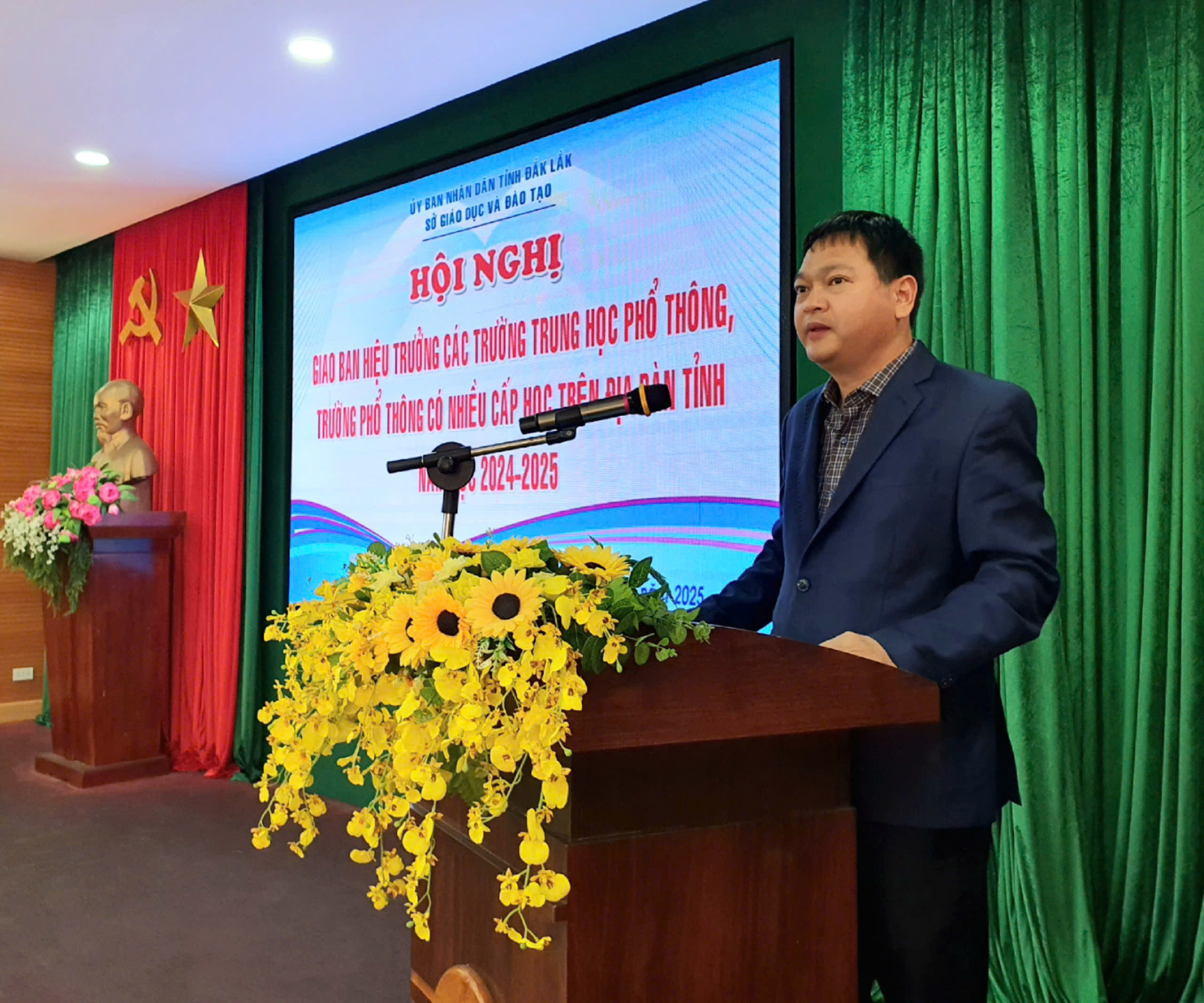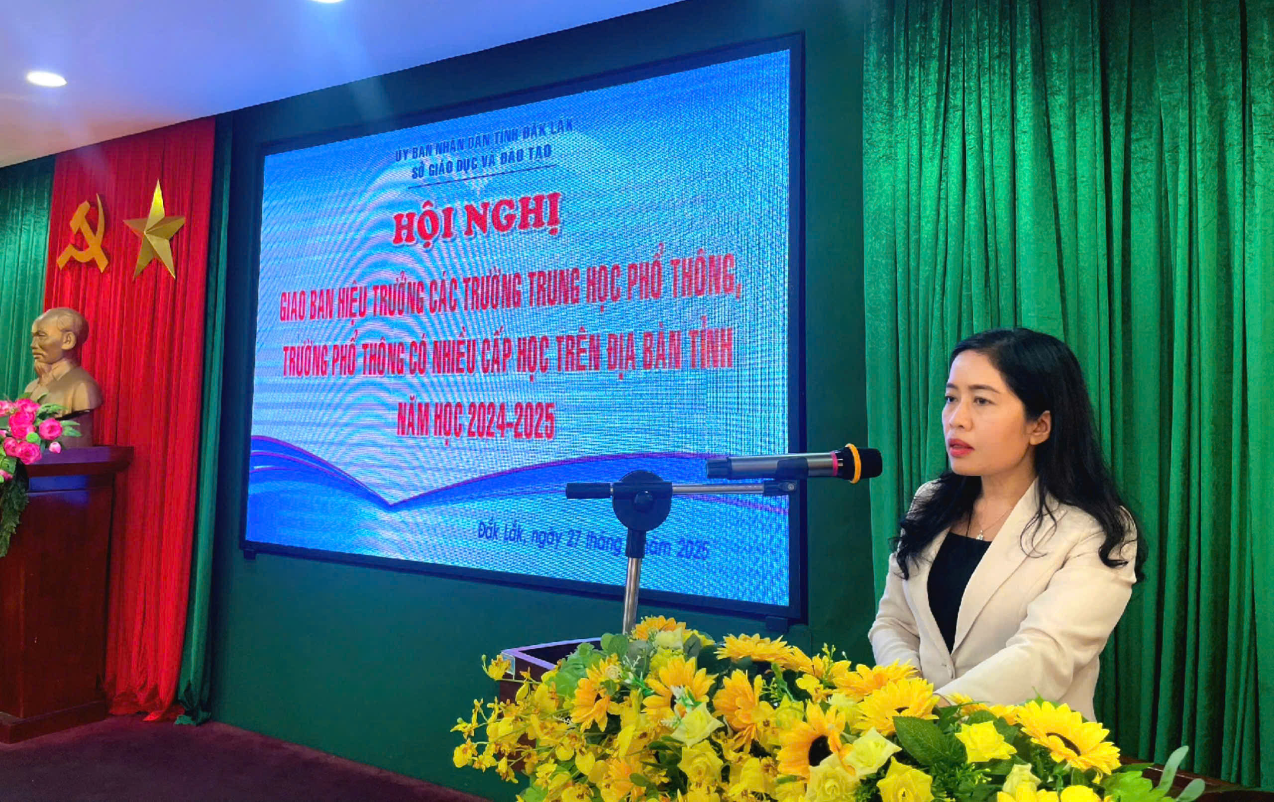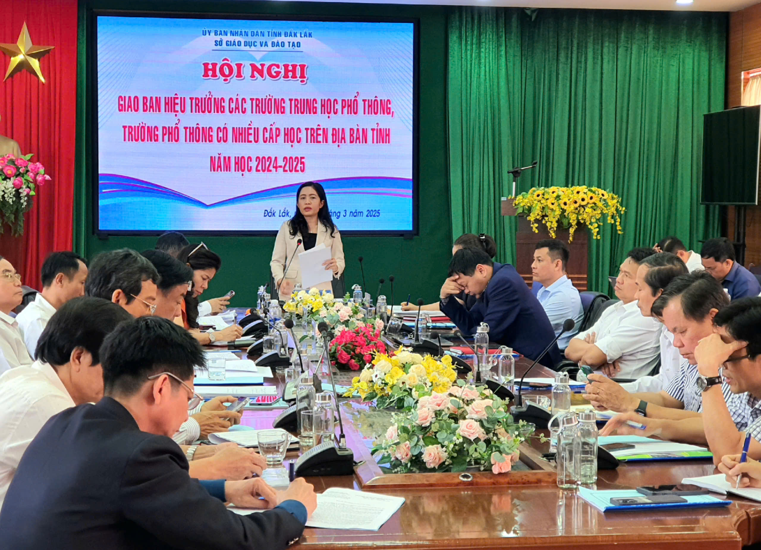 Sáng ngày 27/3/2025, Sở Giáo dục và Đào tạo (GDĐT) Đắk Lắk đã tổ chức thành công Hội nghị giao ban Hiệu trưởng các trường trung học phổ thông (THPT) và các trường phổ thông có nhiều cấp học trên địa bàn tỉnh. Hội nghị là sự kiện quan trọng, thể hiện sự quan tâm sâu sắc của Sở GDĐT đối với công tác giáo dục THPT và mong muốn tạo ra một diễn đàn trao đổi thông tin hiệu quả, góp phần nâng cao chất lượng giáo dục của tỉnh.