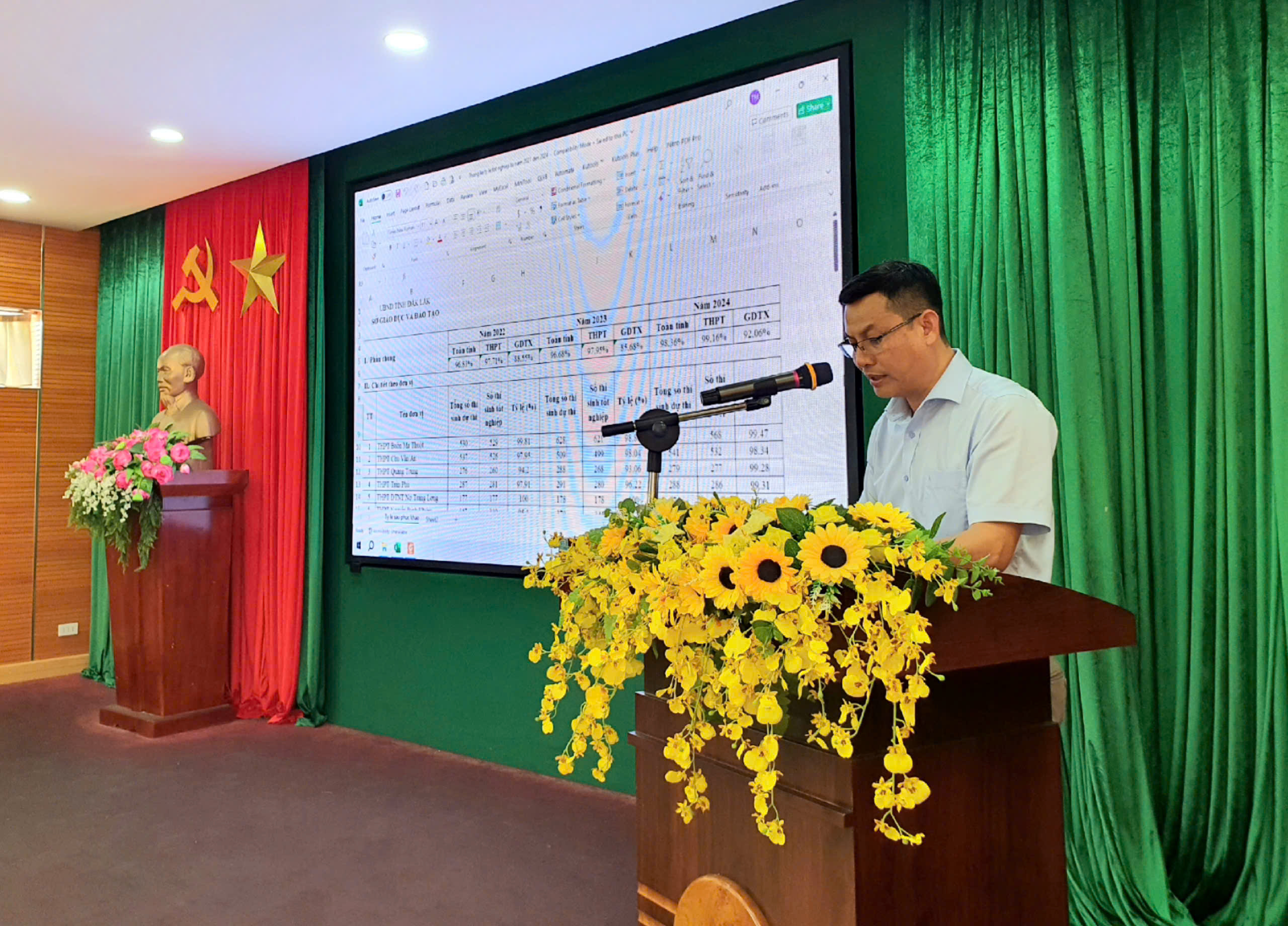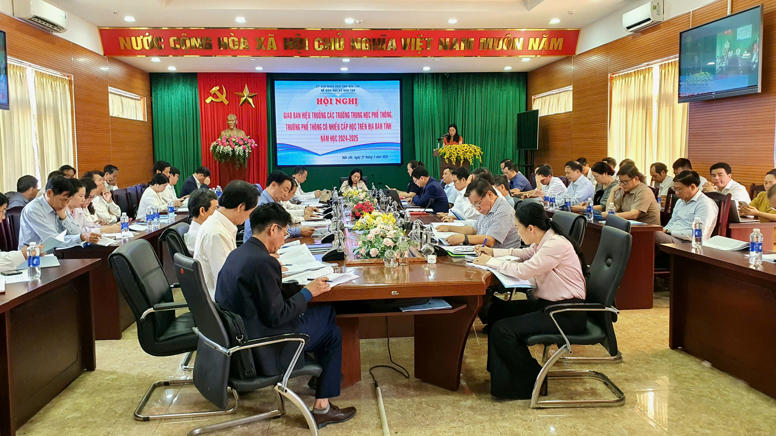 Việc chuẩn bị cho Kỳ thi Tốt nghiệp THPT năm 2025 là một trong những mối quan tâm hàng đầu của Hội nghị. Các đại biểu đã phân tích kết quả thi của tỉnh, của từng trường trong năm học 2023-2024, so sánh với kết quả của cả nước và các tỉnh thành khác, từ đó rút ra những bài học kinh nghiệm và định hướng cụ thể cho năm học 2024-2025 và các năm học tiếp theo. Hiệu trưởng các nhà trường đã tích cực tham gia thảo luận, chia sẻ kinh nghiệm và đề xuất nhiều giải pháp thiết thực để nâng cao chất lượng giáo dục THPT.