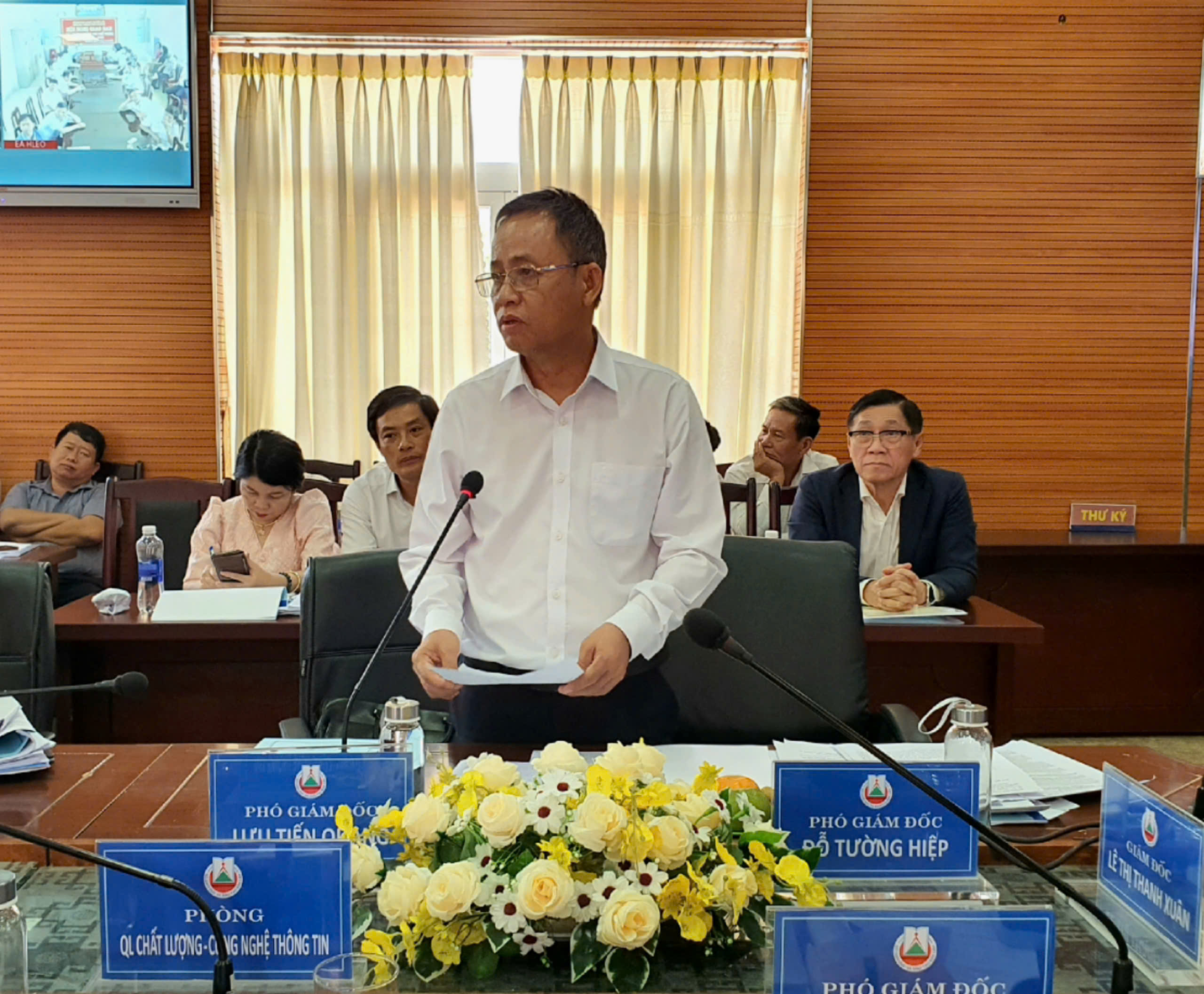 Ông Nguyễn Hoàng Chương, Trưởng phòng Quản lý chất lượng - Công nghệ thông tin báo cáo phân tích kết quả thi Tốt nghiệp THPT trong thời gian qua[/caption]