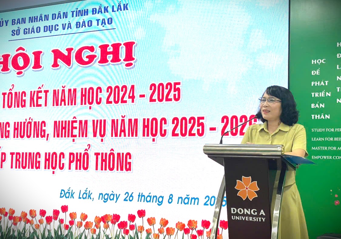 Chiều 26/8, Sở Giáo dục và Đào tạo (GDĐT) Đắk Lắk tổ chức Hội nghị trực tiếp kết hợp trực tuyến đến 94 điểm cầu là các trường trung học phổ thông (THPT), trường phổ thông có nhiều cấp học, giao ban tổng kết năm học 2024-2025 và triển khai phương hướng, nhiệm vụ năm học 2025-2026 cấp THPT.