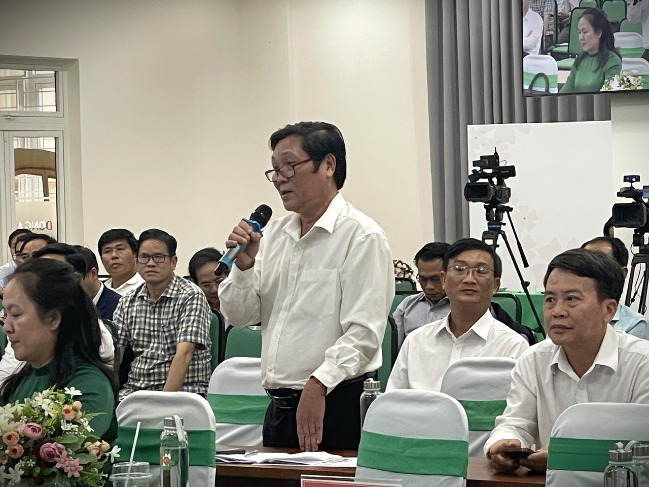 Đại biểu Nguyễn Thị Xuân Hương – Hiệu trưởng trường THPT Lê Quý Đôn phát biểu tại Hội nghị