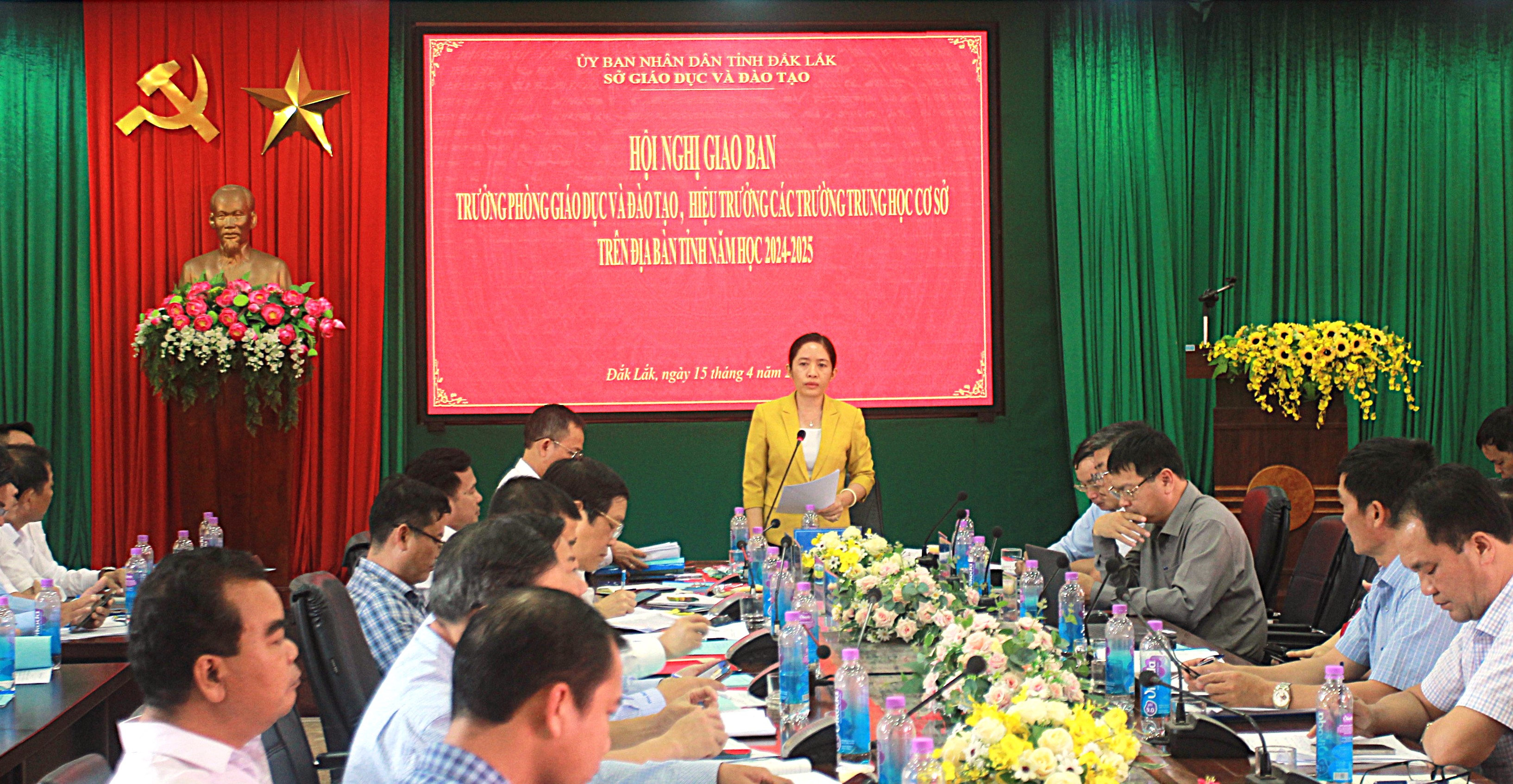 Sáng ngày 15/4/2025, Sở Giáo dục và Đào tạo (GDĐT) Đắk Lắk đã tổ chức thành công Hội nghị giao ban Trưởng phòng GDĐT và Hiệu trưởng các trường trung học cơ sở (THCS) trên địa bàn tỉnh. Hội nghị là sự kiện quan trọng, thể hiện sự quan tâm của Sở GDĐT đối với công tác giáo dục THCS và tạo diễn đàn trao đổi thông tin, góp phần nâng cao chất lượng giáo dục tỉnh nhà.