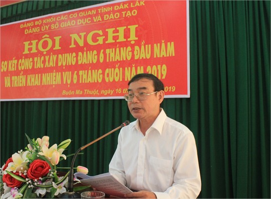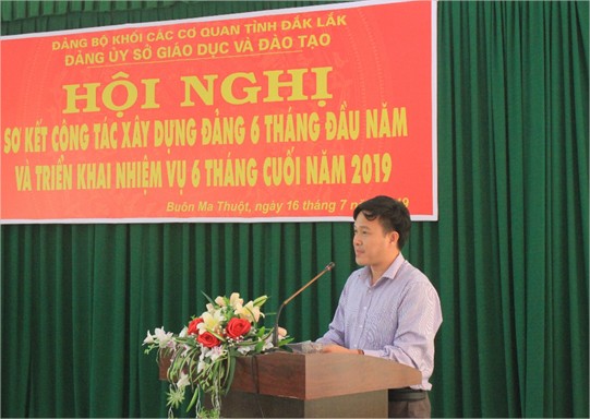 Ngày 16/7/2019, Đảng ủy Sở Giáo dục và Đào tạo đã tổ chức Hội nghị sơ kết công tác xây dựng Đảng 6 tháng đầu năm và triển khai phương hướng, nhiệm vụ trọng tâm 6 tháng cuối năm 2019. Dự Hội nghị có đồng chí Phạm Đăng Khoa - tỉnh ủy viên, Bí thư Đảng bộ, Giám đốc Sở GDĐT; các đồng chí ủy viên Ban Chấp hành Đảng bộ và toàn thể đảng viên thuộc 08 chị bộ trực thuộc.