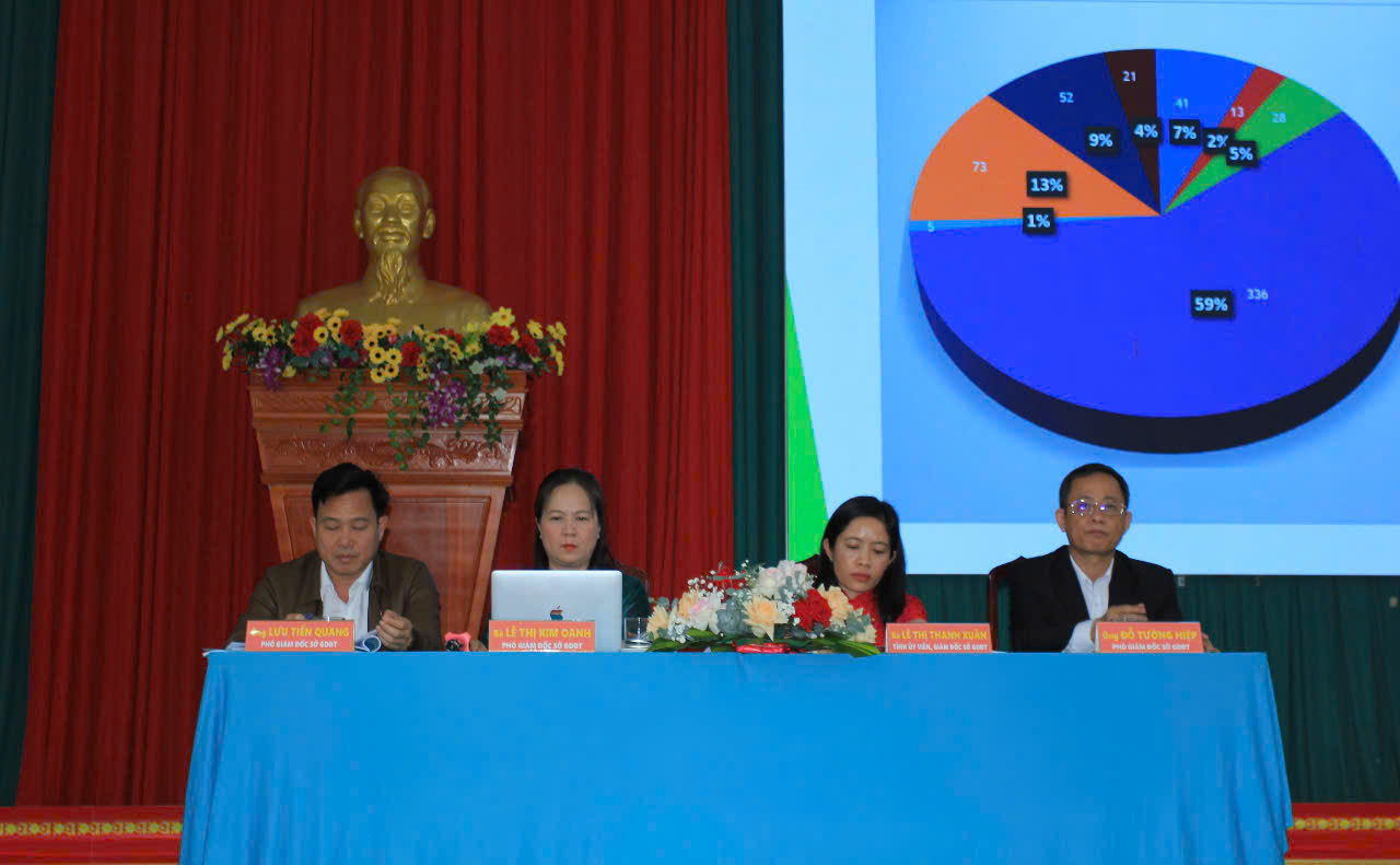 Phát biểu kết luận Hội nghị, Giám đốc Sở GDĐT Lê Thị Thanh Xuân nhấn mạnh: Năm học 2024 – 2025 diễn ra trong bối cảnh hết sức đặc biệt, là năm hoàn thành việc thực hiện chương trình giáo dục theo chương trình GDPT 2018 từ lớp 1 cho đến lớp 12; là năm toàn ngành Giáo dục tỉnh nỗ lực khắc phục những tồn tại trong công tác tuyển sinh vào lớp 10, nâng cao chất lượng giáo dục đài trà. Trên thực tế, thời gian qua, đội ngũ cán bộ, giáo viên, nhân viên toàn ngành Giáo dục tỉnh đã hết sức nỗ lực, thực hiện hiệu quả trong công tác quản lý, giảng dạy; hoàn thành tốt các nhiệm vụ học kì I, năm học 2024 – 2025 đề ra. Đồng chí Giám đốc Sở GDĐT cũng yêu cầu các phòng GDĐT, các đơn vị trực thuộc nghiên cứu, thực hiện đúng Thông tư 29, Thông tư 30 ngày 30/12/2024 của Bộ GDĐT; việc dạy thêm, học thêm trong nhà trường phải đúng, đủ các yêu cầu theo Thông tư; tăng cường giáo dục đạo đức lối sống, trình độ chuyên môn, lý luận chính trị cho giáo viên, học sinh; tăng cường khả năng tự học, tự nghiên cứu của học sinh. Các đơn vị bám sát vào nội dung kế hoạch tuyển sinh lớp 10 năm học 2025 - 2026 của UBND tỉnh, các văn bản chỉ đạo của Sở GDĐT; thực hiện hiệu quả công tác tuyển sinh vào lớp 10, kỳ thi tốt nghiệp THPT năm 2025. Toàn ngành Giáo dục tỉnh quyết tâm cao thực hiện thắng lợi 10 nhiệm vụ trọng tâm trong học kì II, năm học 2024 – 2025.