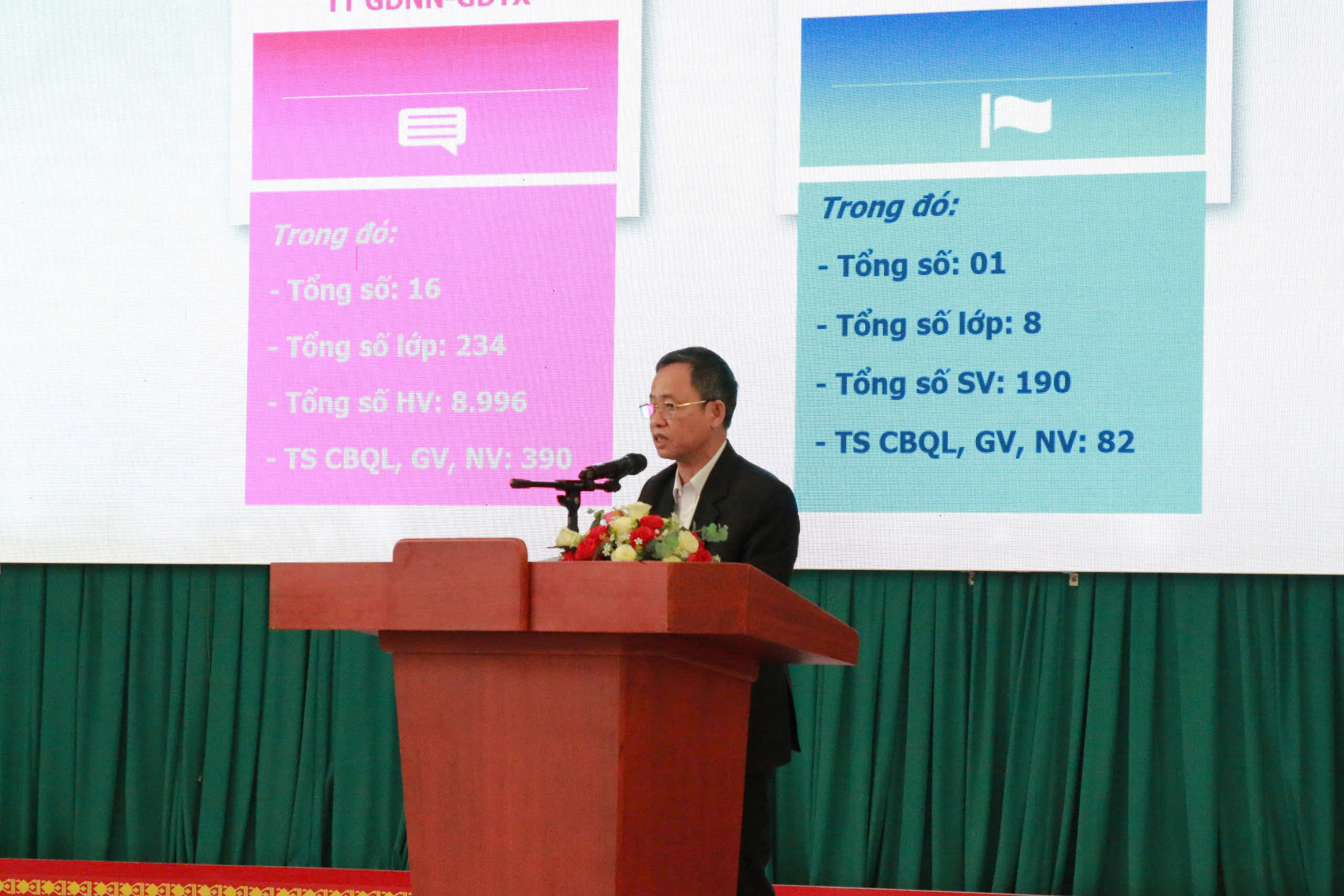 Phó Giám đốc Sở GDĐT Đỗ Tường Hiệp trình bày báo cáo sơ kết học kỳ I, các nhiệm vụ trọng tâm học kỳ II năm học 2024 – 2025