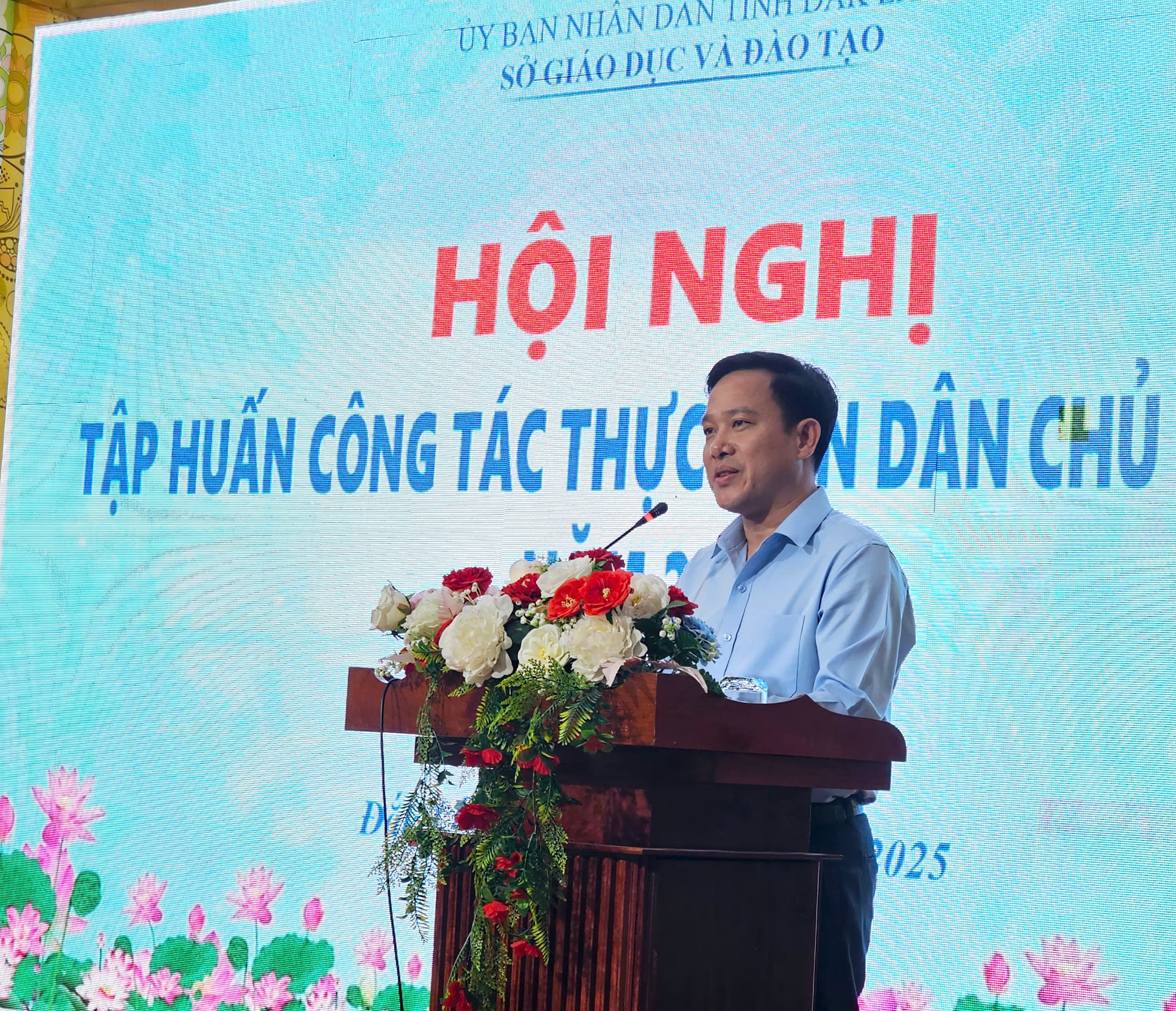 Phát biểu khai mạc Hội nghị, Phó Giám đốc Sở GDĐT Lưu Tiến Quang nhấn mạnh: Để có sự đoàn kết, thống nhất cao trong toàn Ngành, việc triển khai, thực hiện dân chủ ở cơ sở là hết sức cần thiết; thực hiện dân chủ ở cơ sở không chỉ là một nhiệm vụ quan trọng mà còn đảm bảo quyền lợi chính đáng của cán bộ, giáo viên, nhân viên và học sinh. Phát huy tối đa dân chủ trong các nhà trường không chỉ ngăn ngừa và chống các hành vi tham nhũng, lãng phí, mất đoàn kết nội bộ mà còn giúp nâng cao chất lượng dạy và học, tạo ra môi trường sư phạm tích cực, khuyến khích sự sáng tạo và phát triển toàn diện cho cán bộ, giáo viên, nhân viên và học sinh.