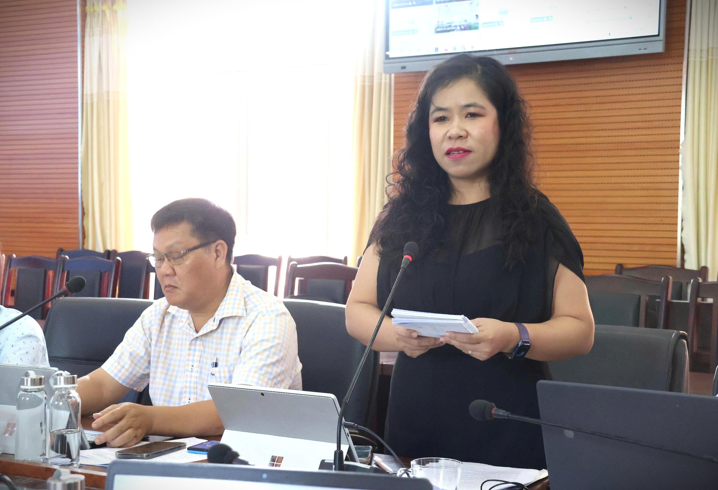 Bà Krông Ái Hương Lan - Phó Trưởng phòng, phụ trách phòng GDPT, Sở GDĐT, phát biểu tại Hội Nghị