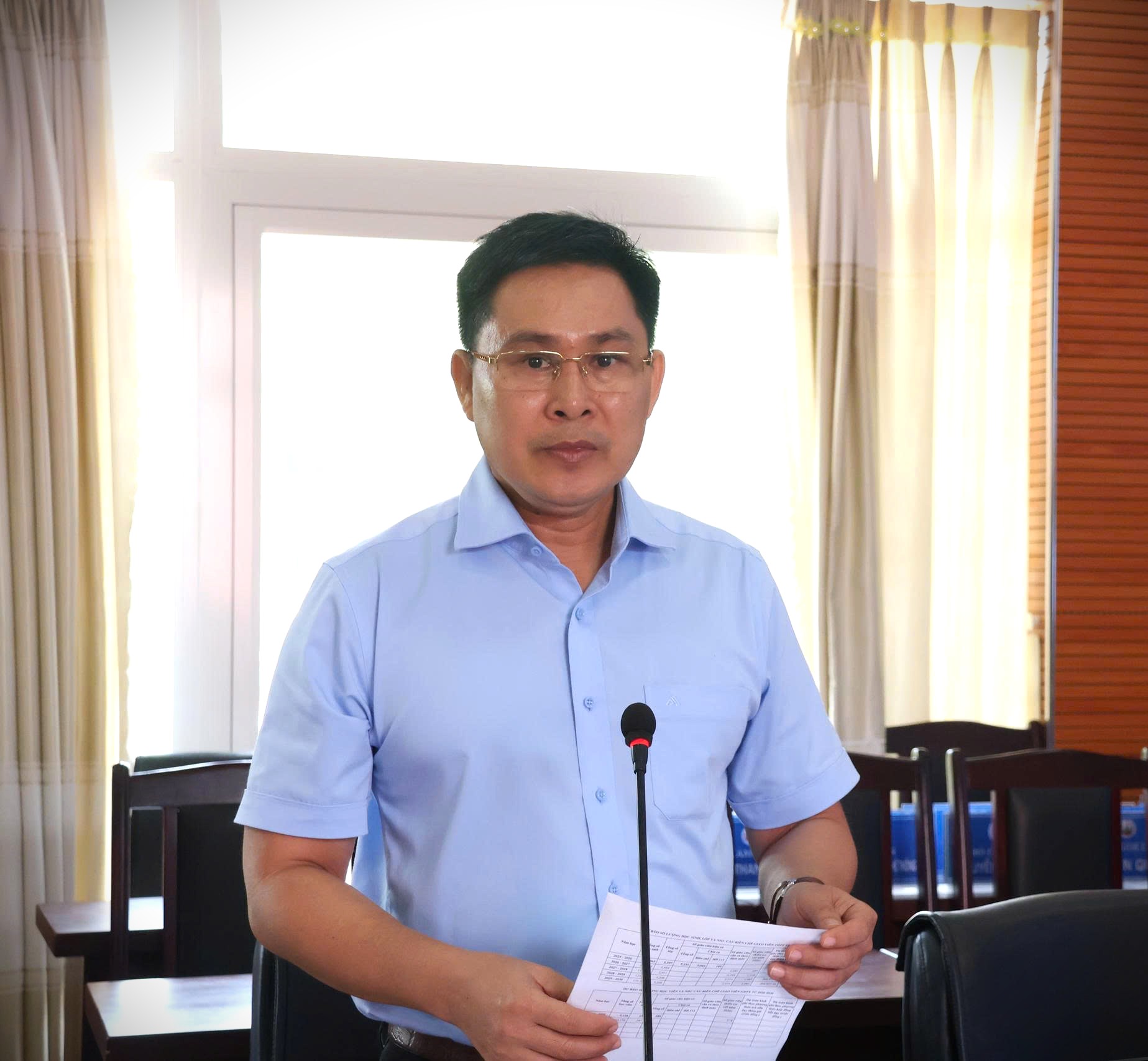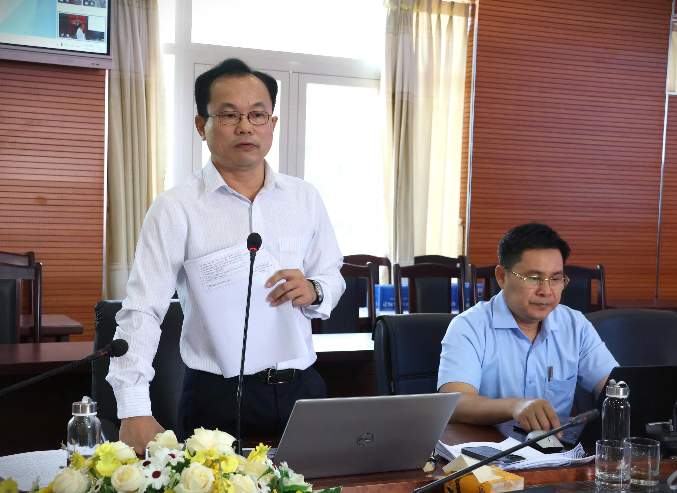 Ông Trần Văn Hùng - Phó Trưởng phòng KHTC, Sở GDĐT, báo cáo tại Hội nghị