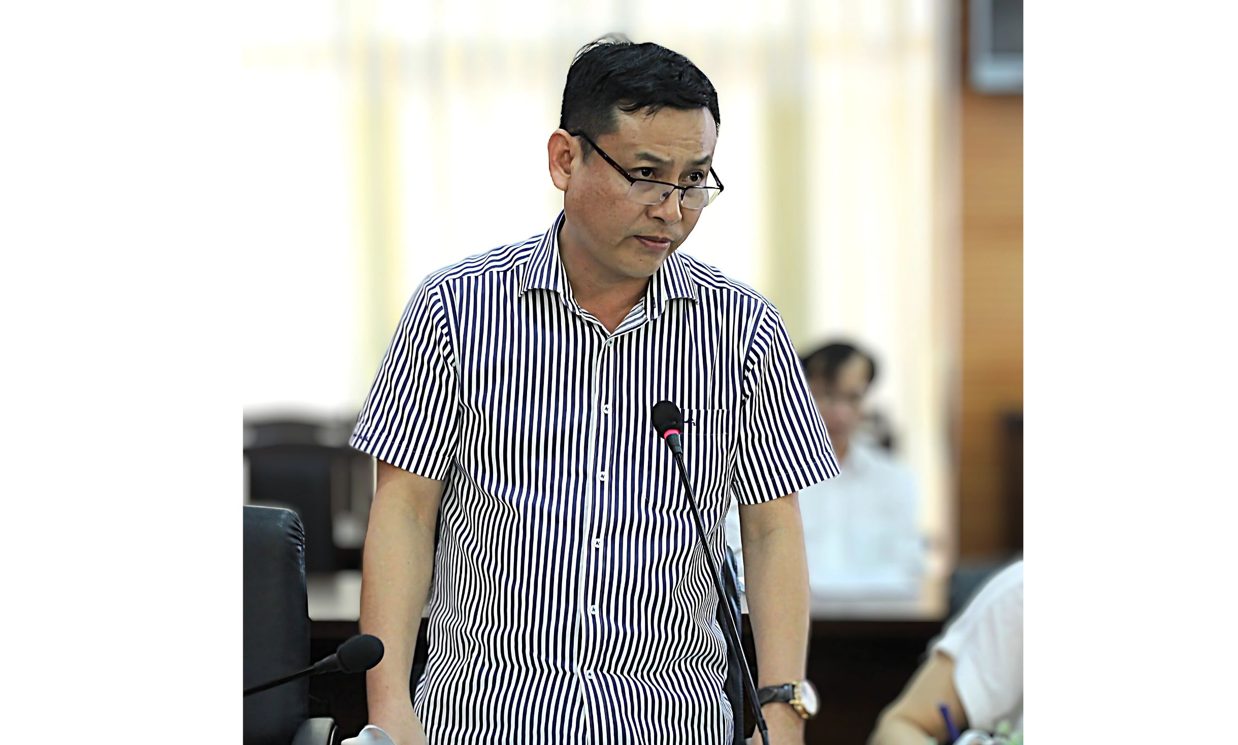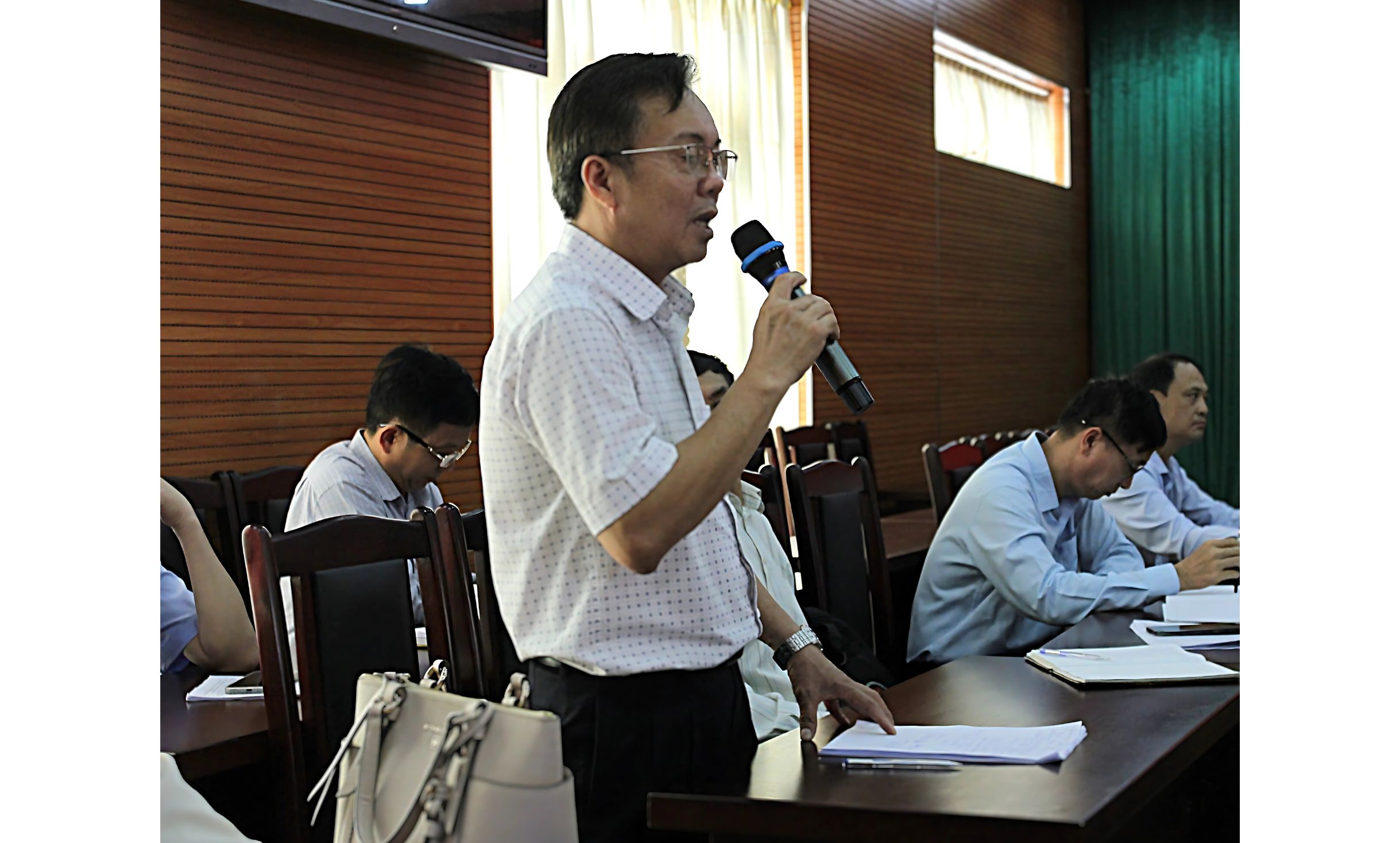 Ông Nguyễn Hoàng Chương, Trưởng phòng QLCL-CNTT trao đổi tại cuộc họp