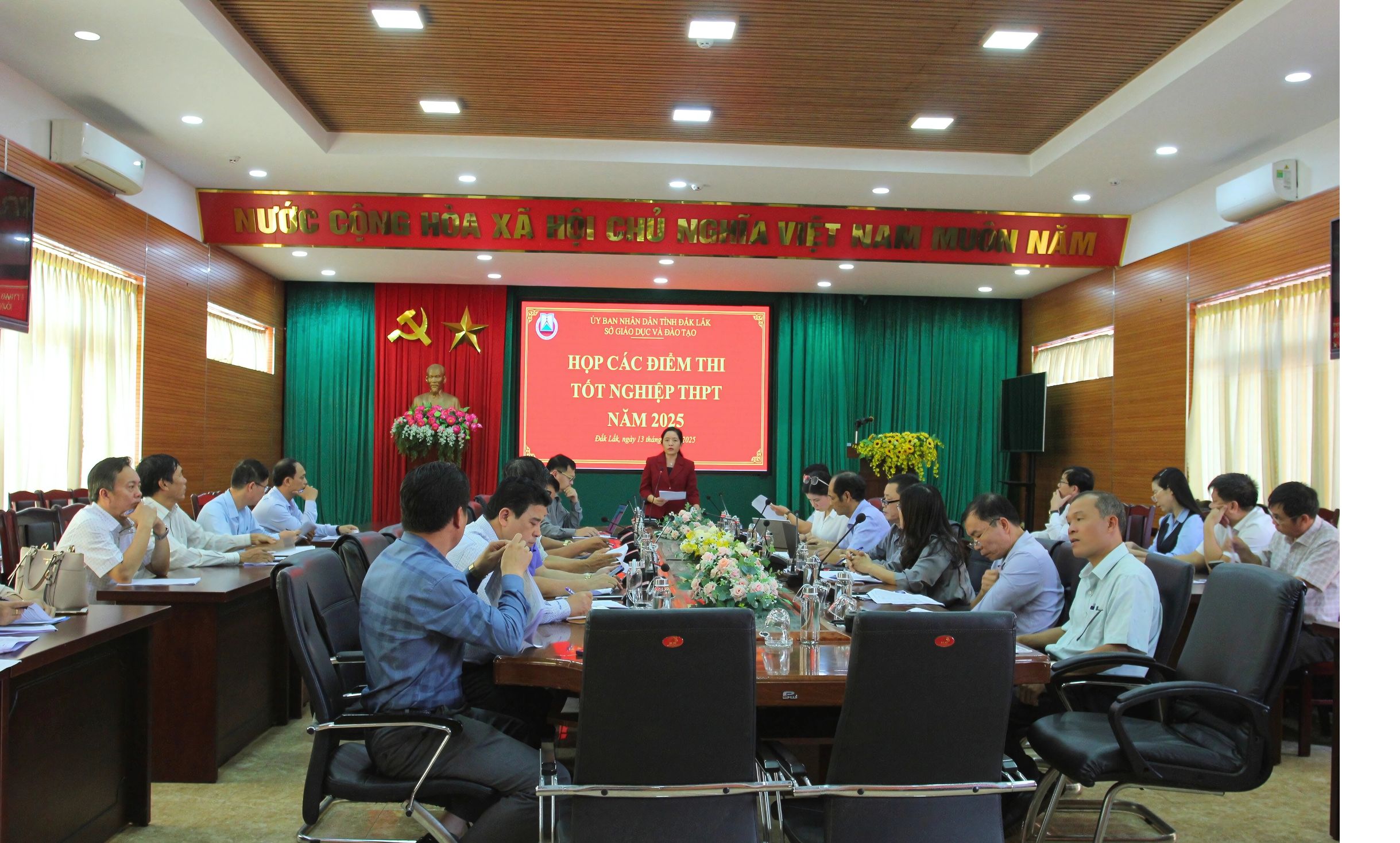 Ngày 13/6/2025, Sở Giáo dục và Đào tạo (GDĐT) Đắk Lắk tổ chức cuộc họp Hiệu trưởng các đơn vị đặt các Điểm thi Kỳ thi tốt nghiệp THPT năm 2025. Cuộc họp có sự tham gia của lãnh đạo các phòng chuyên môn, nghiệp vụ thuộc Sở, lãnh đạo 33 Trường THPT đặt điểm thi của kỳ thi Tốt nghiệp THPT năm 2025 tại tỉnh Đắk Lắk; Bà Lê Thị Thanh Xuân, tỉnh ủy viên, Giám đốc Sở GDĐT chủ trì cuộc họp.
