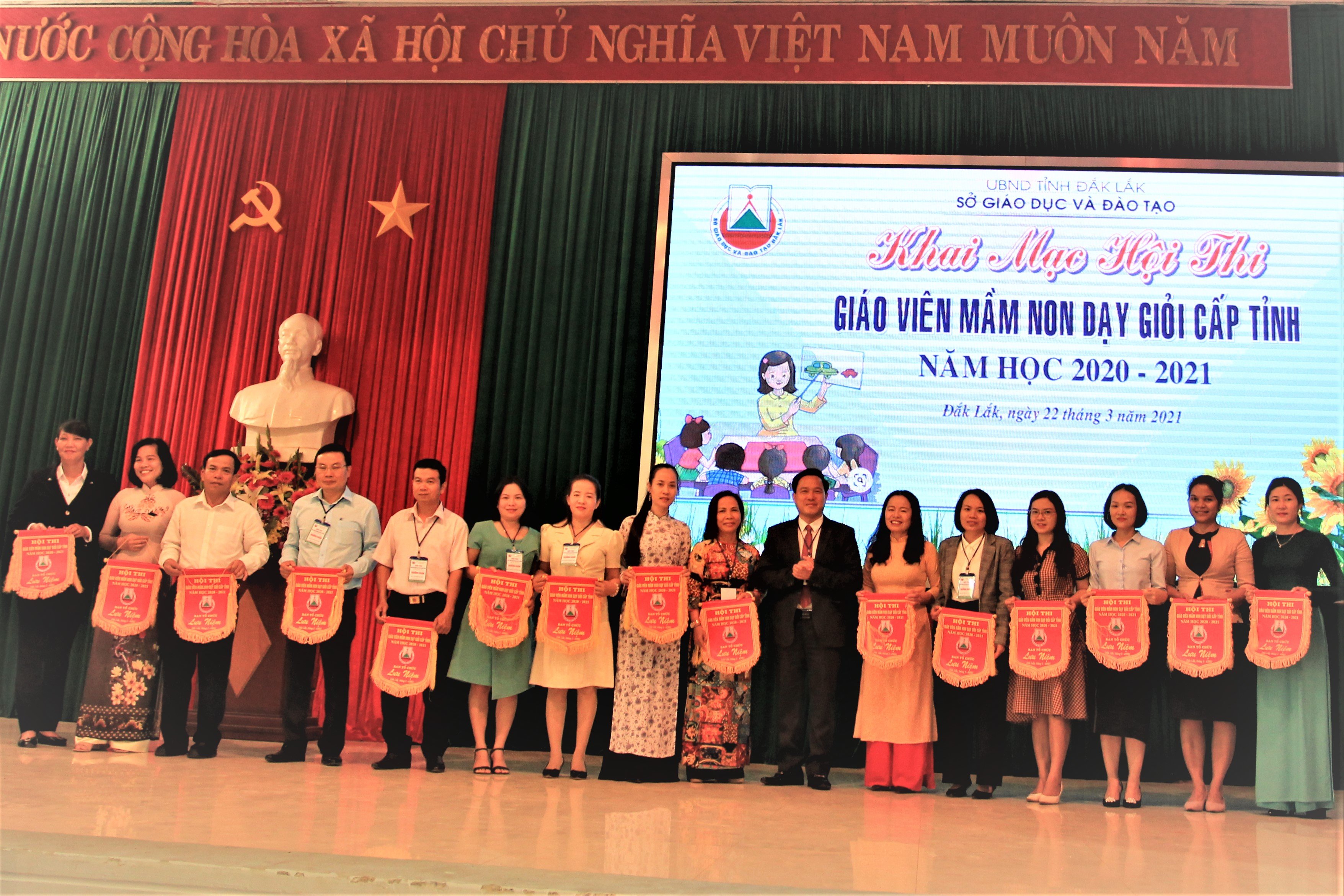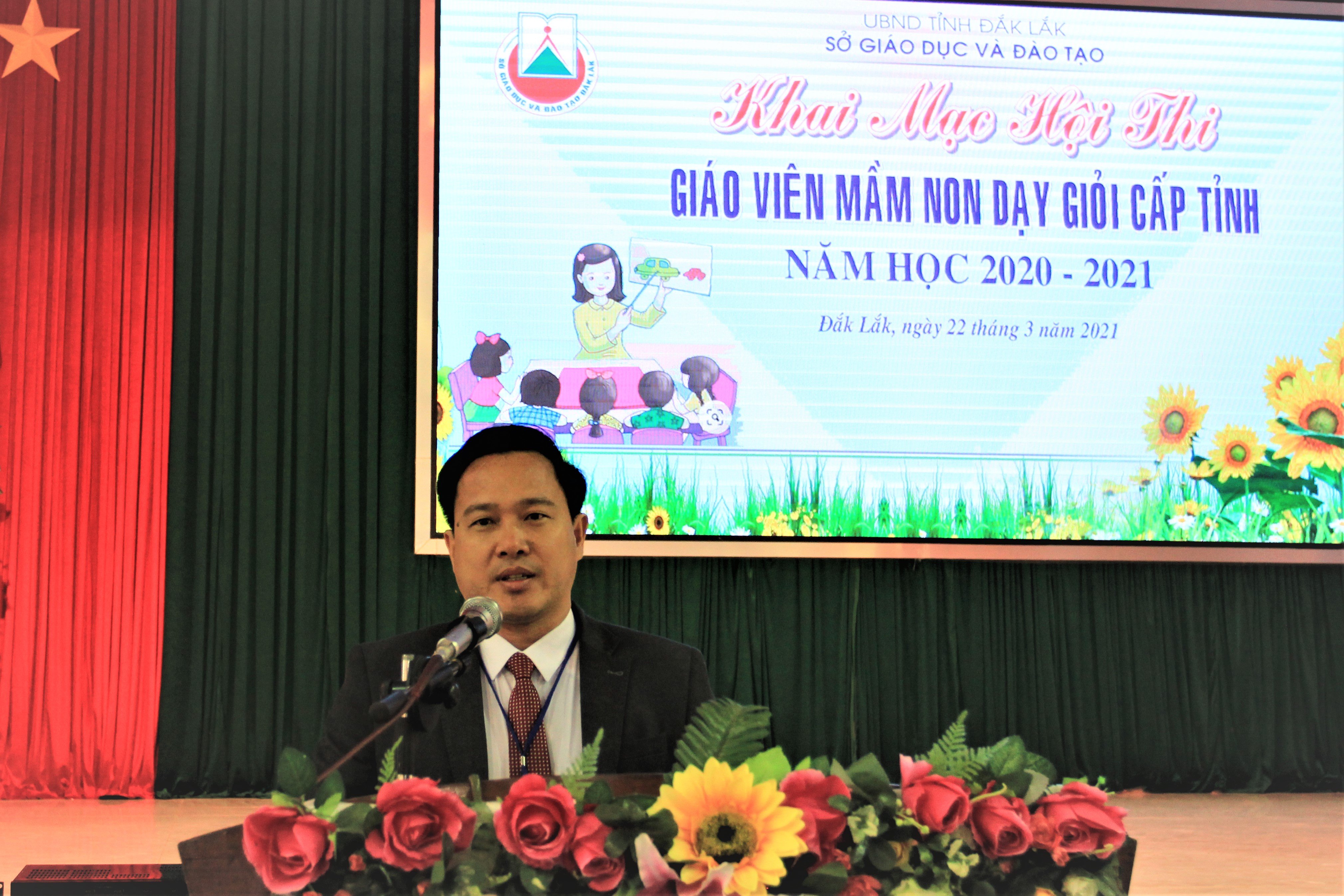 Sáng 22/3/2021, Sở Giáo dục và Đào tạo (GD&ĐT) Đắk Lắk tổ chức khai mạc Hội thi giáo viên dạy giỏi tỉnh cấp mầm non, năm học 2020-2021. Tham dự khai mạc có ông Lưu Tiến Quang, Chủ tịch Công đoàn ngành GD tỉnh; đại diện các phòng chuyên môn, nghiệp vụ Sở GD&ĐT; đại diện lãnh đạo 15 phòng GD&ĐT huyện, thị xã, thành phố và các thí sinh tham gia dự thi.