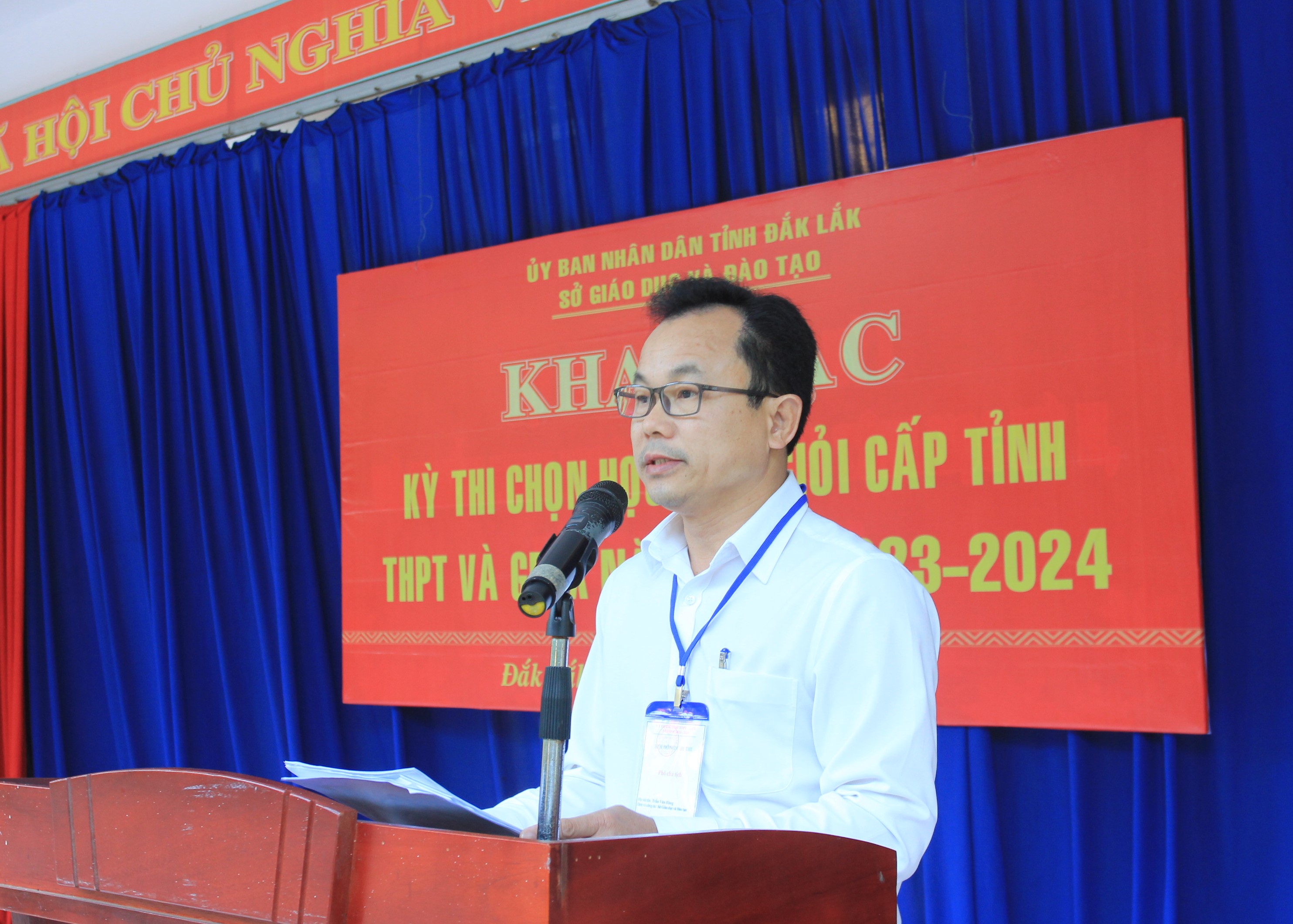 Phát biểu Khai mạc Kỳ thi, Phó Giám đốc Sở GDĐT Đỗ Tường Hiệp khẳng định đây là Kỳ thi quan trọng, nhằm duy trì và nâng chất lượng giáo dục mũi nhọn của tỉnh nhà; biểu dương tinh thần học tập của các em học sinh; mong rằng, các em bình tĩnh, tự tin, hoàn thành tốt bài thi của mình; chấp hành nghiêm túc quy chế thi; đồng thời, yêu cầu cán bộ, giáo viên làm công tác coi thi nghiêm túc, đảm bảo khách quan; tạo tâm lý thoả mái để các em thí sinh yên tâm làm bài thi.