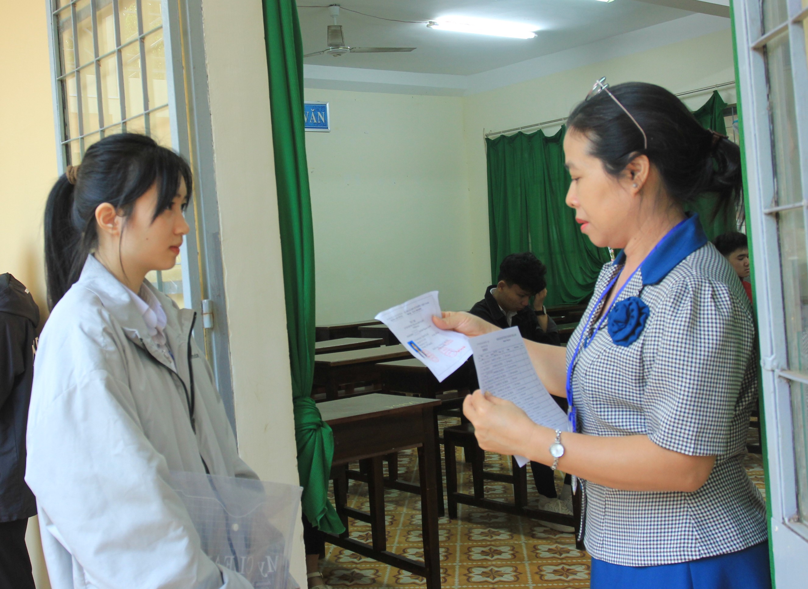 Phó Trưởng phòng GDTrH-GDTX, Phó Chủ tịch Hội đồng Coi thi Trần Văn Hùng phổ biến quy chế thi
