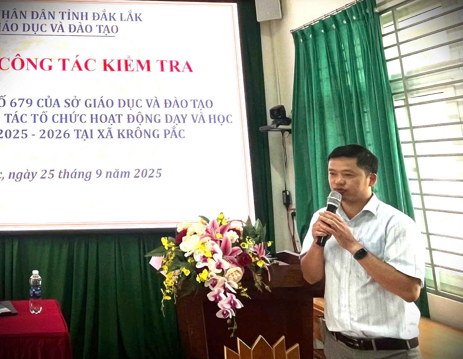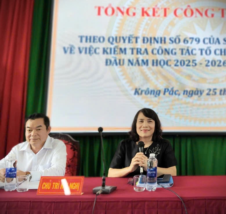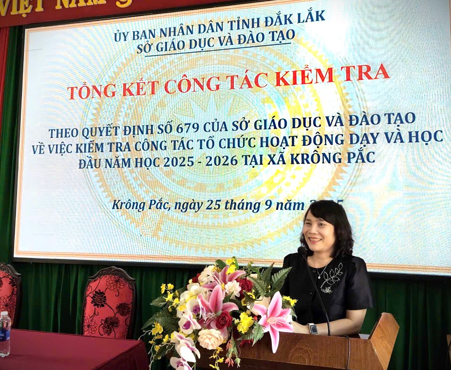 Trong 02 ngà 24, 25/9, Sở Giáo dục và Đào tạo (GDĐT) tỉnh Đắk Lắk tổ chức kiểm tra hoạt động dạy và học đầu năm học 2025-2026 tại các cơ sở giáo dục phổ thông trên địa bàn xã Krông Pắc. Hoạt động kiểm tra đầu năm học được tiến hành theo Kế hoạch số 34/KH-SGDĐT ngày 19/9/2025 và diễn ra từ ngày 24/9 đến 10/10, nhằm nắm bắt tình hình triển khai thực hiện nhiệm vụ tại các cơ sở giáo dục; phát hiện những tồn tại, hạn chế trong công tác quản lý, công tác chuyên môn, kịp thời chỉ đạo, hướng dẫn và đề xuất những biện pháp khắc phục, thực hiện có hiệu quả các nhiệm vụ đã đề ra.