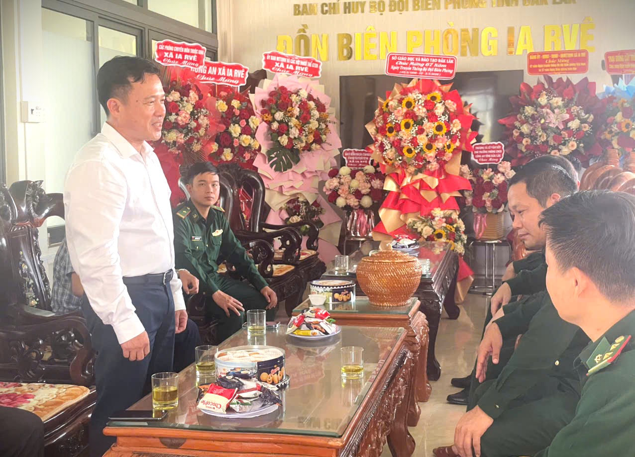 Phát biểu chúc mừng cán bộ, chiến sĩ Đồn Biên phòng 737, xã Ia Rvê, ông Lưu Tiến Quang - Phó Giám đốc Sở GDĐT chúc mừng những thành tích mà cán bộ, chiến sĩ Đồn Biên phòng 737 đã đạt được trong thời gian qua, những đóng góp của tập thể cán bộ chiến sĩ đã tạo lòng tin và động lực cho nhân dân vùng biên giới yên tâm học tập, lao động sản xuất. Đồng thời, đồng chí Phó Giám đốc sở GDĐT Lưu Tiến Quang gửi lời cảm ơn sâu sắc đến cán bộ, chiến sĩ Đồn Biên phòng 737 đã hỗ trợ, giúp đỡ các cơ sở giáo dục tại vùng biên giới trong thời gian qua, góp phần đảm bảo hoạt động giáo dục được diễn ra an toàn, xuyên suốt, hoàn thành kế hoạch năm học đã đề ra.