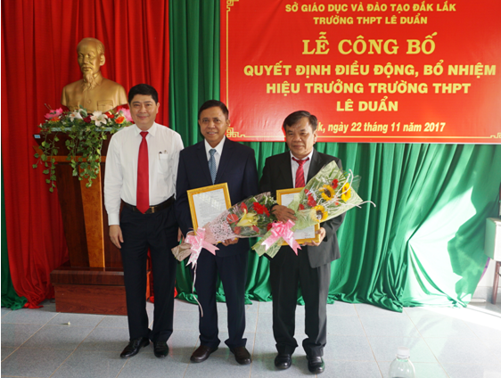 Sáng 22-11-2017, tại Trường THPT Lê Duẩn, Sở Giáo dục và Đào tạo tổ chức Lễ công bố Quyết định điều động, bổ nhiệm Hiệu trưởng nhà trường cho ông Phạm Văn Sinh nguyên Phó Hiệu trưởng Trường THPT Buôn Ma Thuột. Tham dự có ông Phạm Đăng Khoa – Giám đốc Sở; ông Đoàn Đình Duẩn – Phó Chủ tịch Công đoàn ngành GD tỉnh; lãnh đạo các phòng chuyên môn, nghiệp vụ Sở; tập thể cán bộ, giáo viên, nhân viên trường THPT Lê Duẩn.