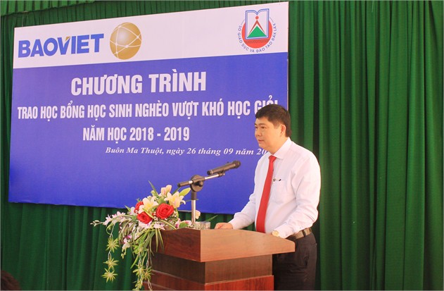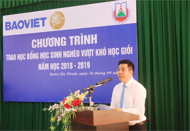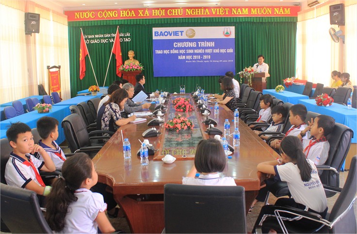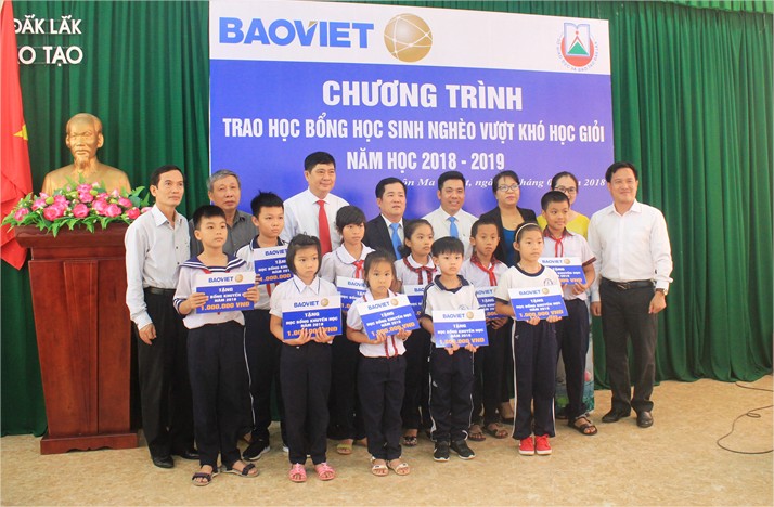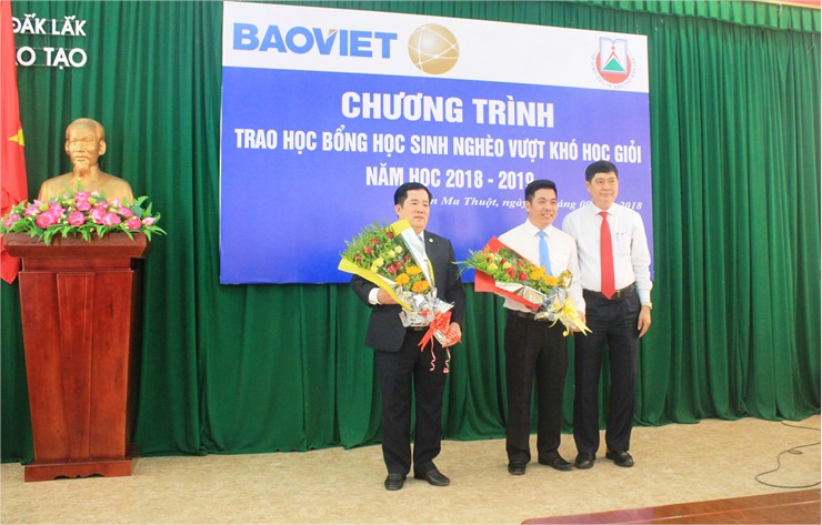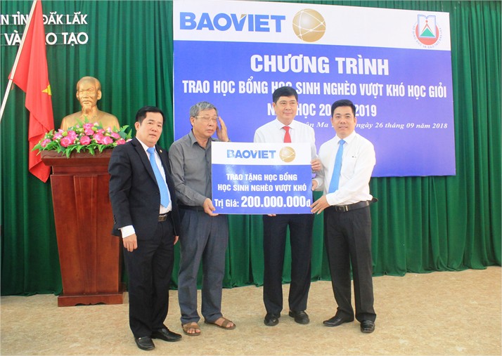 Sáng 26/9/2018, Công ty Bảo Việt Đắk Lắk, Công ty Bảo Việt Nhân thọ Đắk Lắk phối hợp với Sở Giáo dục và Đào tạo tổ chức Lễ trao học bổng cho học sinh nghèo vượt khó học giỏi của tỉnh. Dự buổi lễ có ông Phạm Đăng Khoa - Giám đốc cùng Lãnh đạo các phòng chuyên môn Sở GDĐT; ông Đỗ Anh Dương - Phó Giám đốc Công ty Bảo Việt Đắk Lắk; ông Dương Xuân Vũ - Giám đốc Công ty Bảo Việt nhân thọ Đắk Lăk; ông Nguyễn Văn Hòa - Phó Chủ tịch thường trực Hội Khuyến học tỉnh.