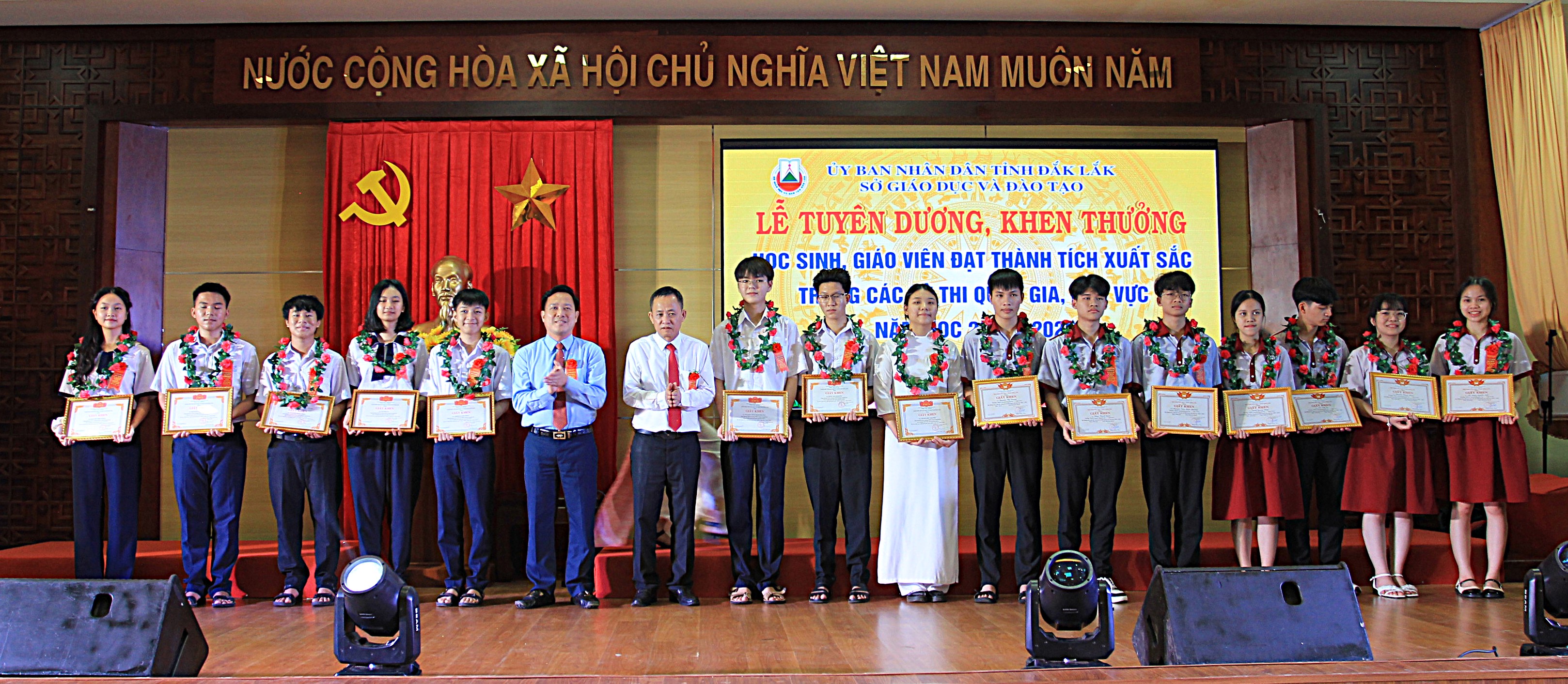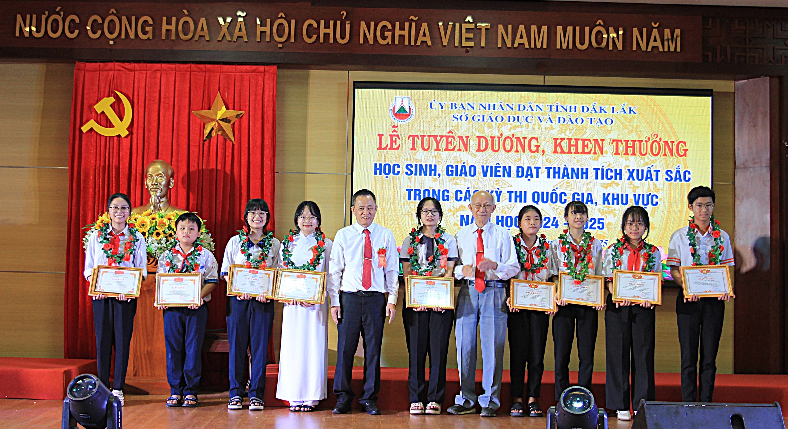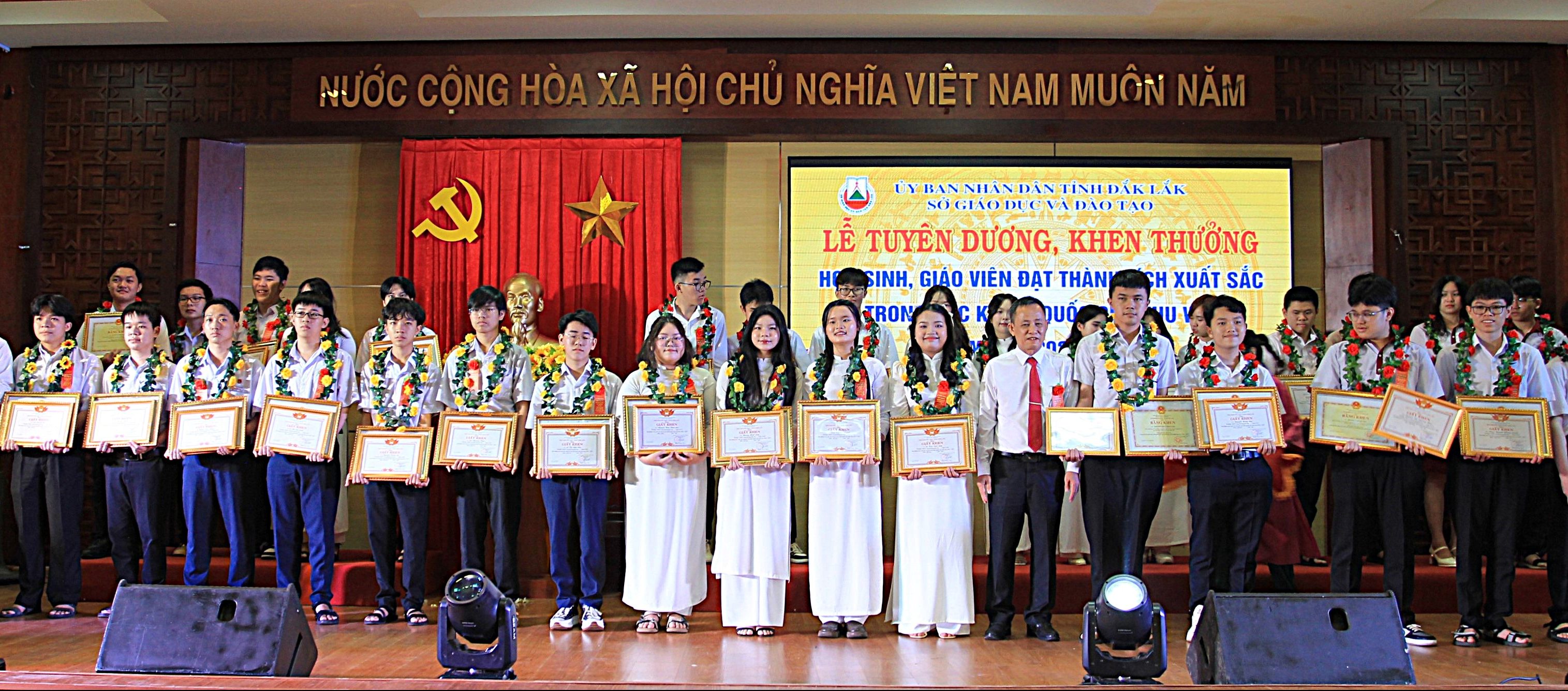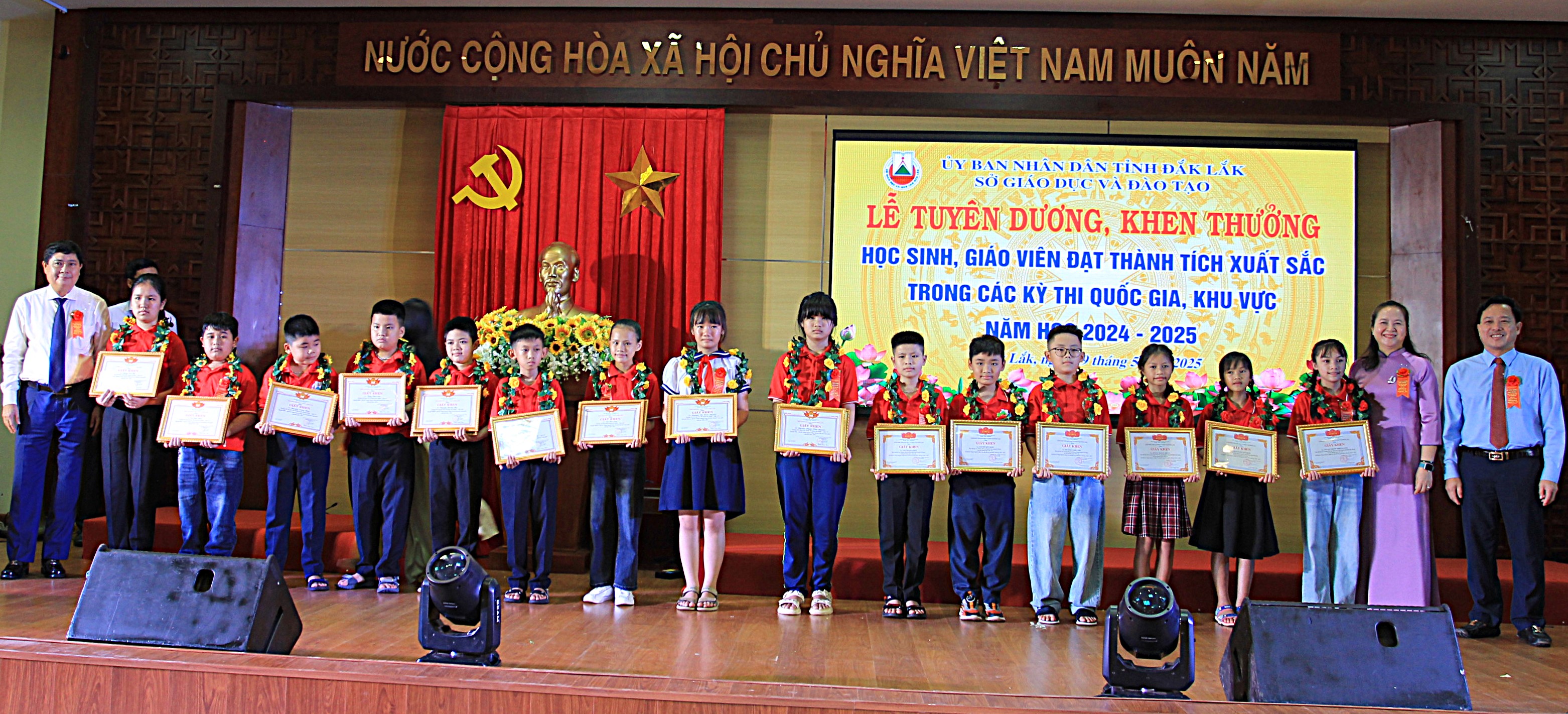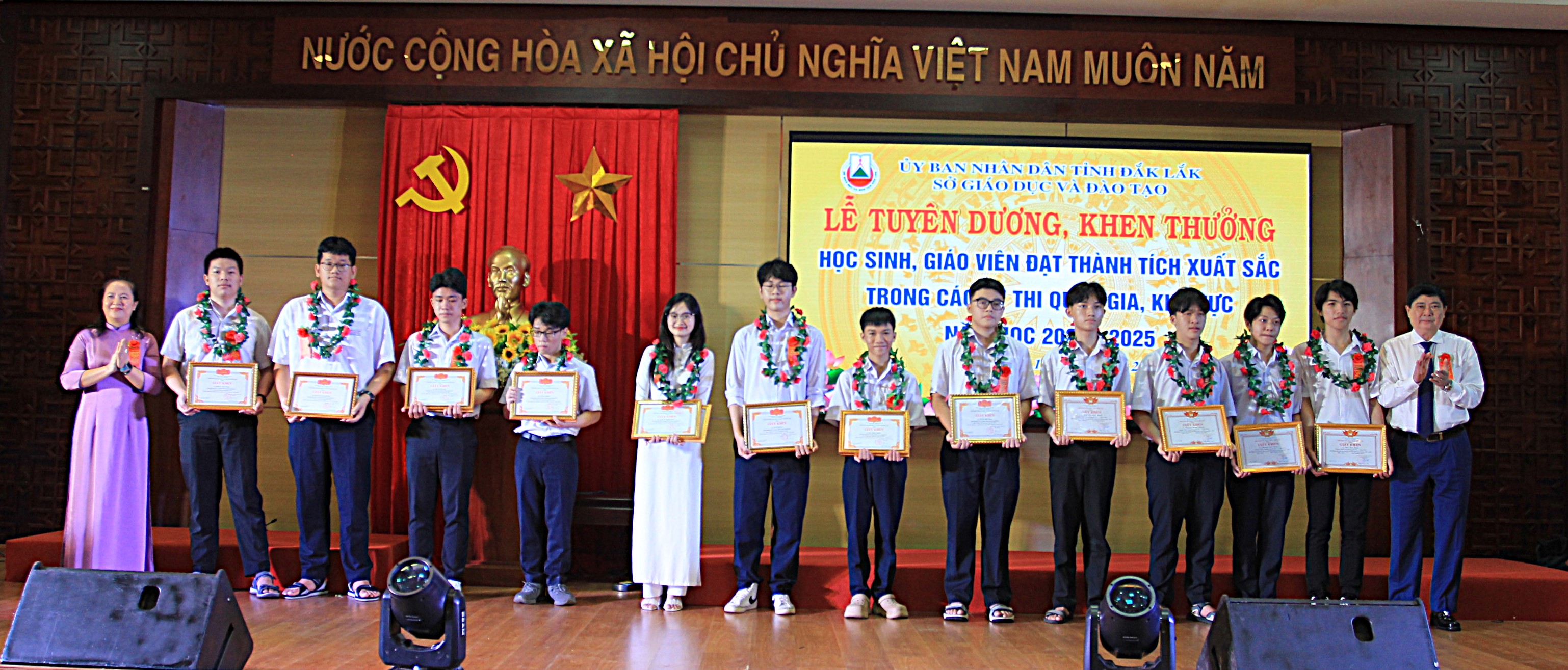 Ngày 19/5/2025, Sở Giáo dục và Đào tạo (GDĐT) tỉnh Đắk Lắk đã long trọng tổ chức Lễ tuyên dương, khen thưởng học sinh và giáo viên đạt thành tích xuất sắc trong các kỳ thi cấp quốc gia, khu vực năm học 2024 - 2025. Đây là sự kiện ý nghĩa, ghi nhận những nỗ lực và thành quả đáng tự hào của ngành giáo dục Đắk Lắk trong năm học vừa qua.