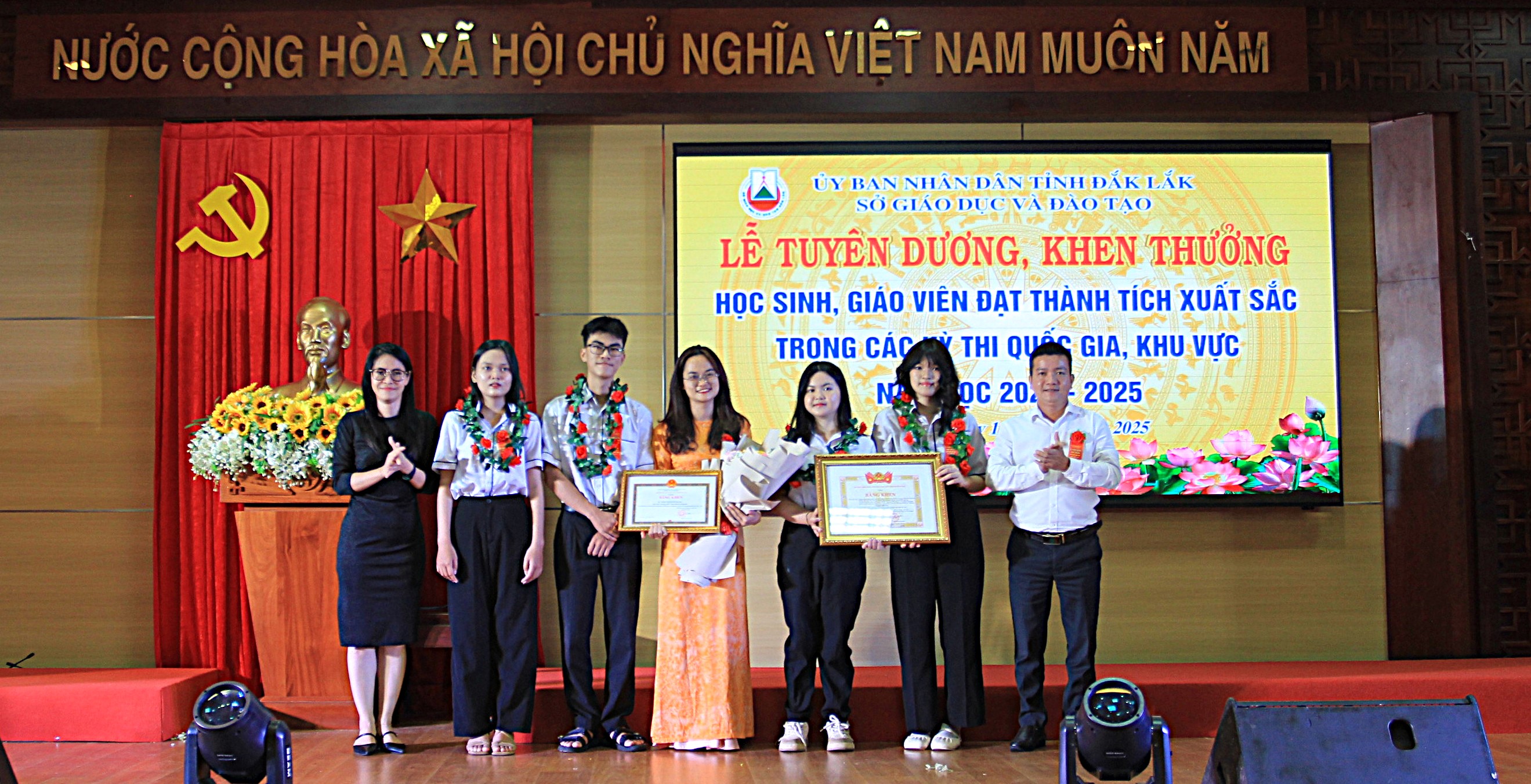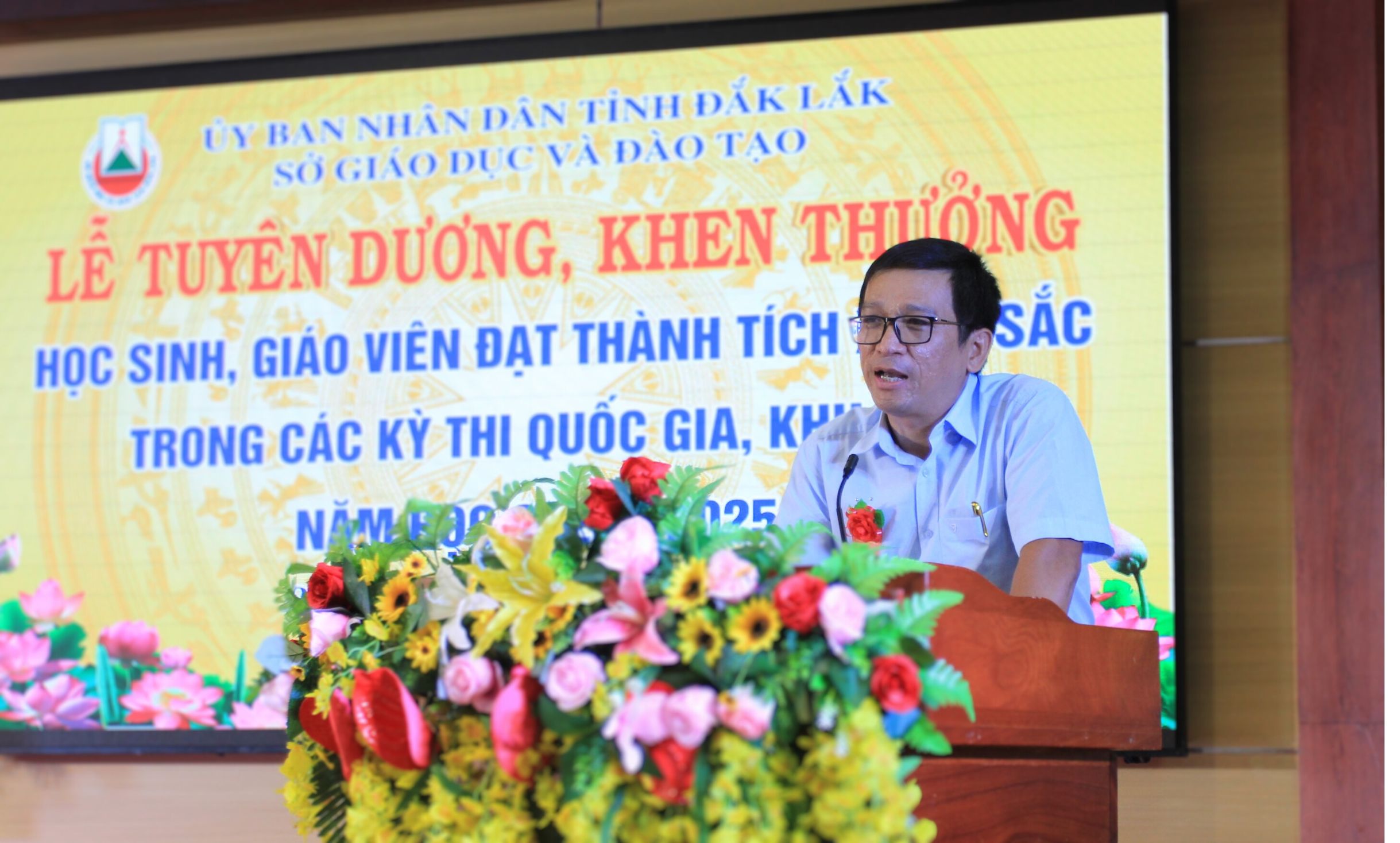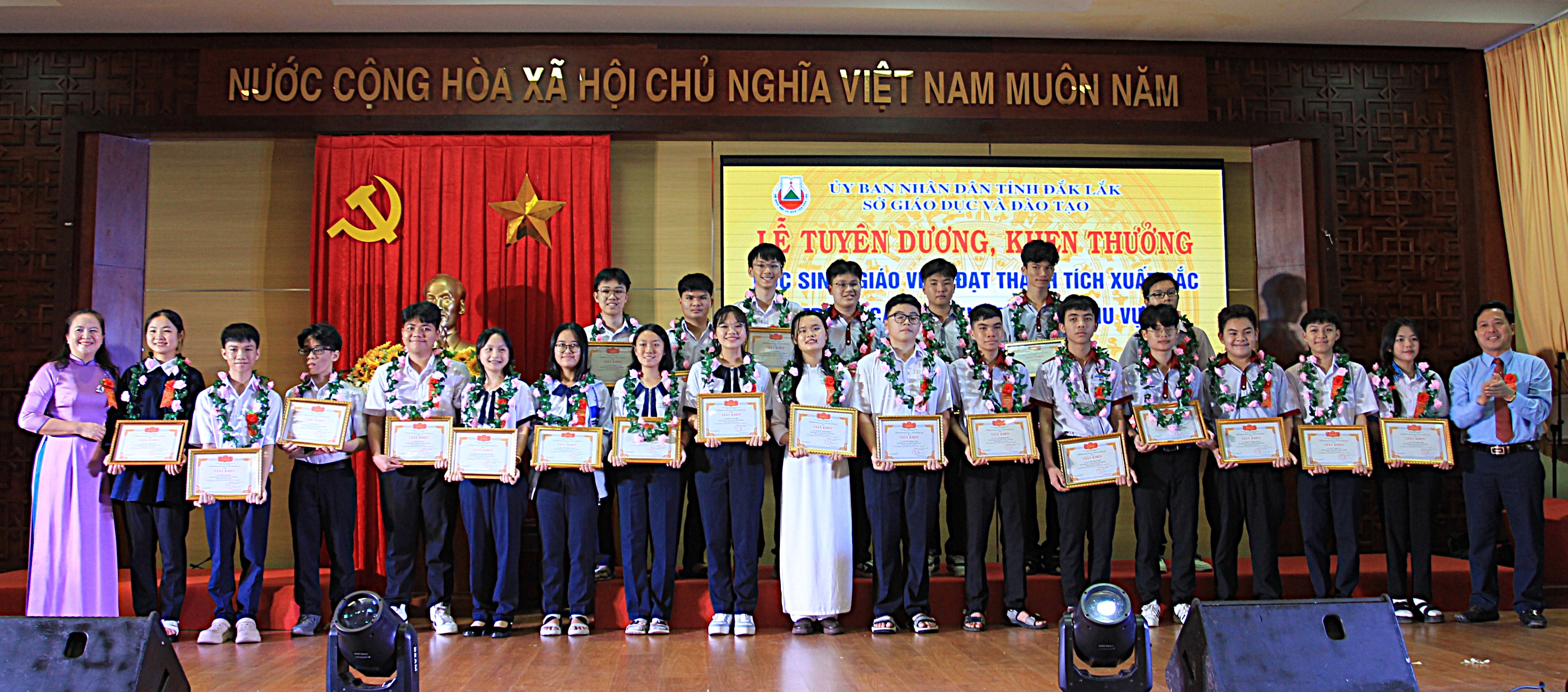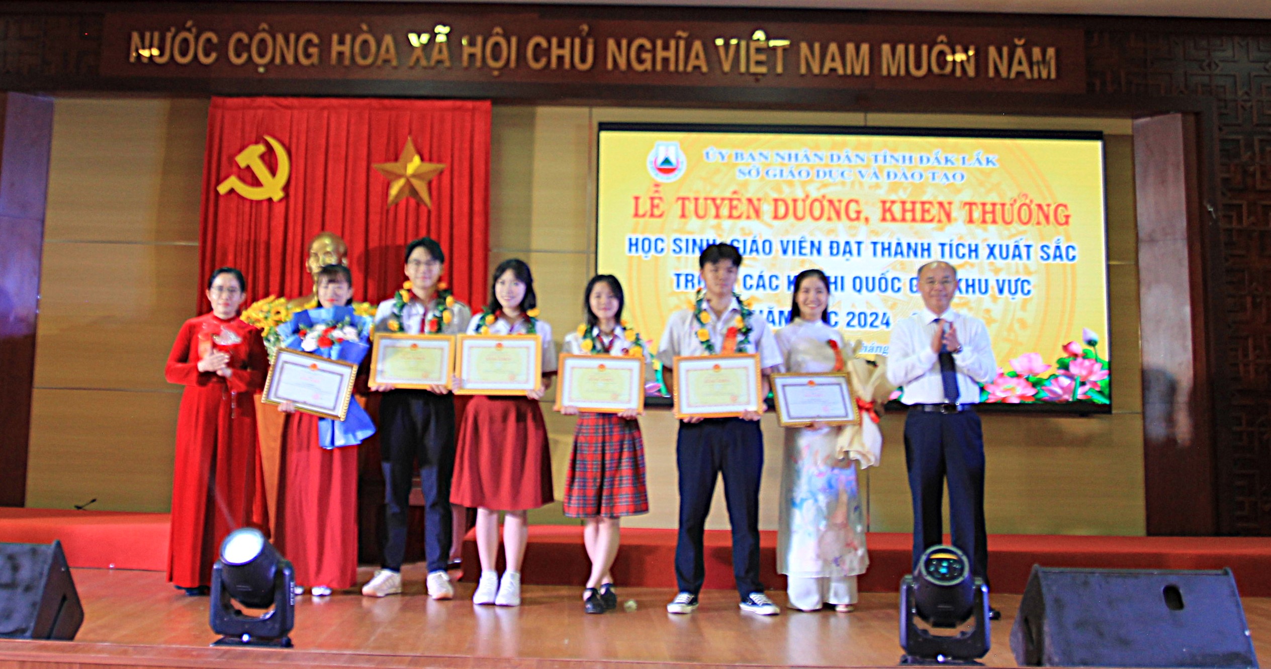 Ngày 19/5/2025, Sở Giáo dục và Đào tạo (GDĐT) tỉnh Đắk Lắk đã long trọng tổ chức Lễ tuyên dương, khen thưởng học sinh và giáo viên đạt thành tích xuất sắc trong các kỳ thi cấp quốc gia, khu vực năm học 2024 - 2025. Đây là sự kiện ý nghĩa, ghi nhận những nỗ lực và thành quả đáng tự hào của ngành giáo dục Đắk Lắk trong năm học vừa qua.