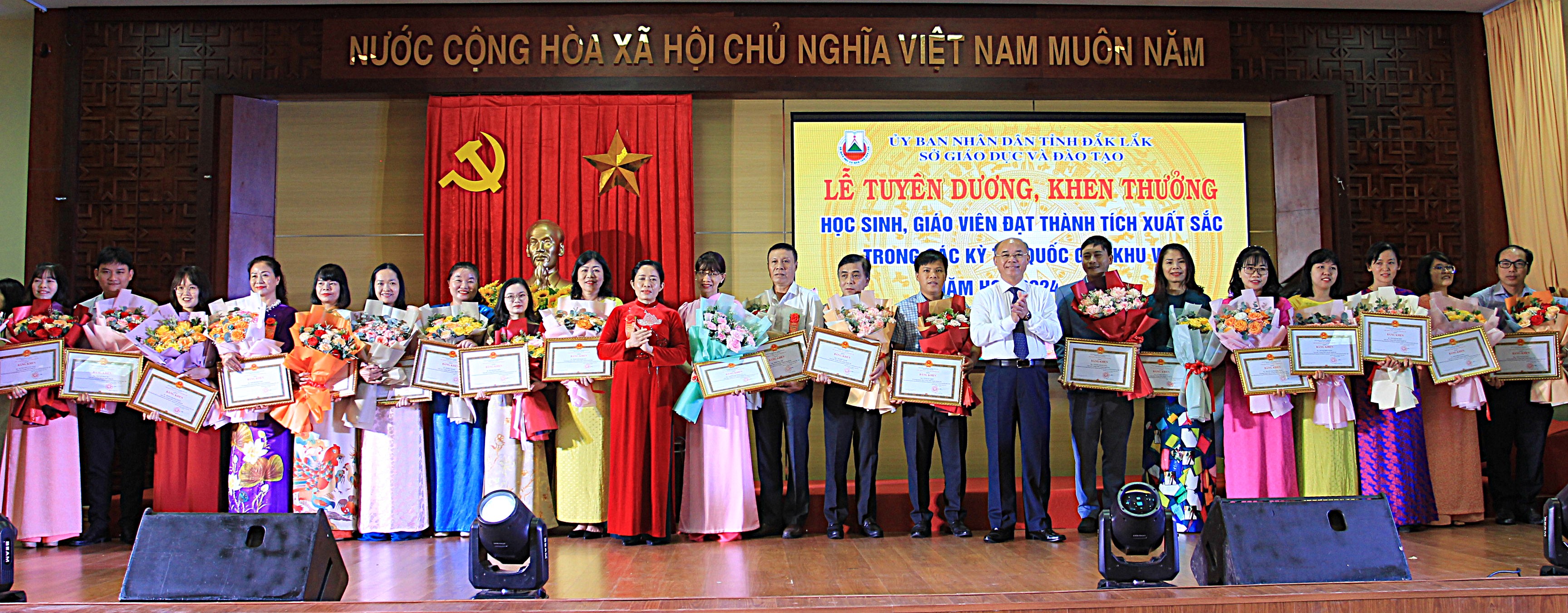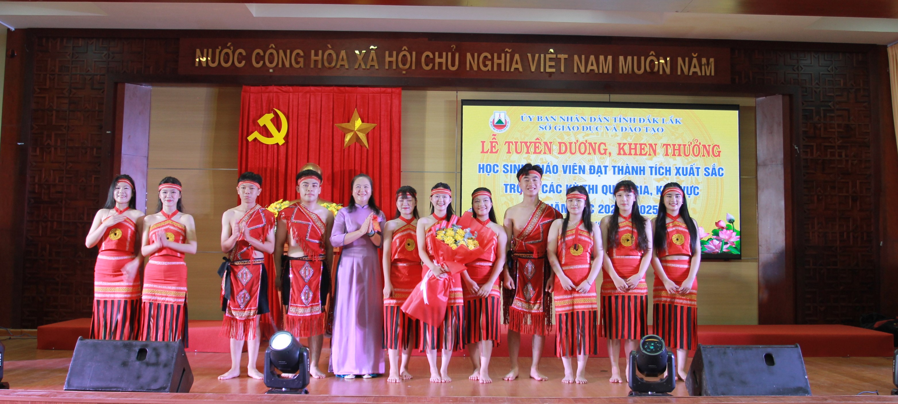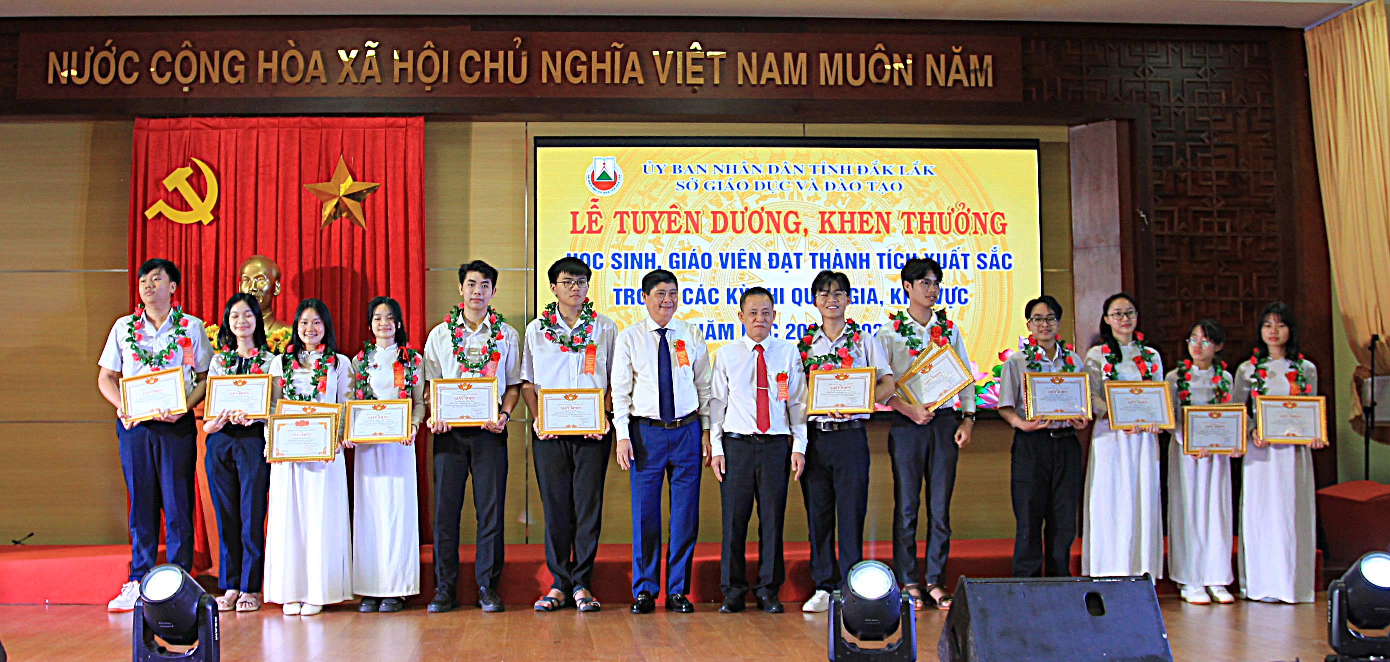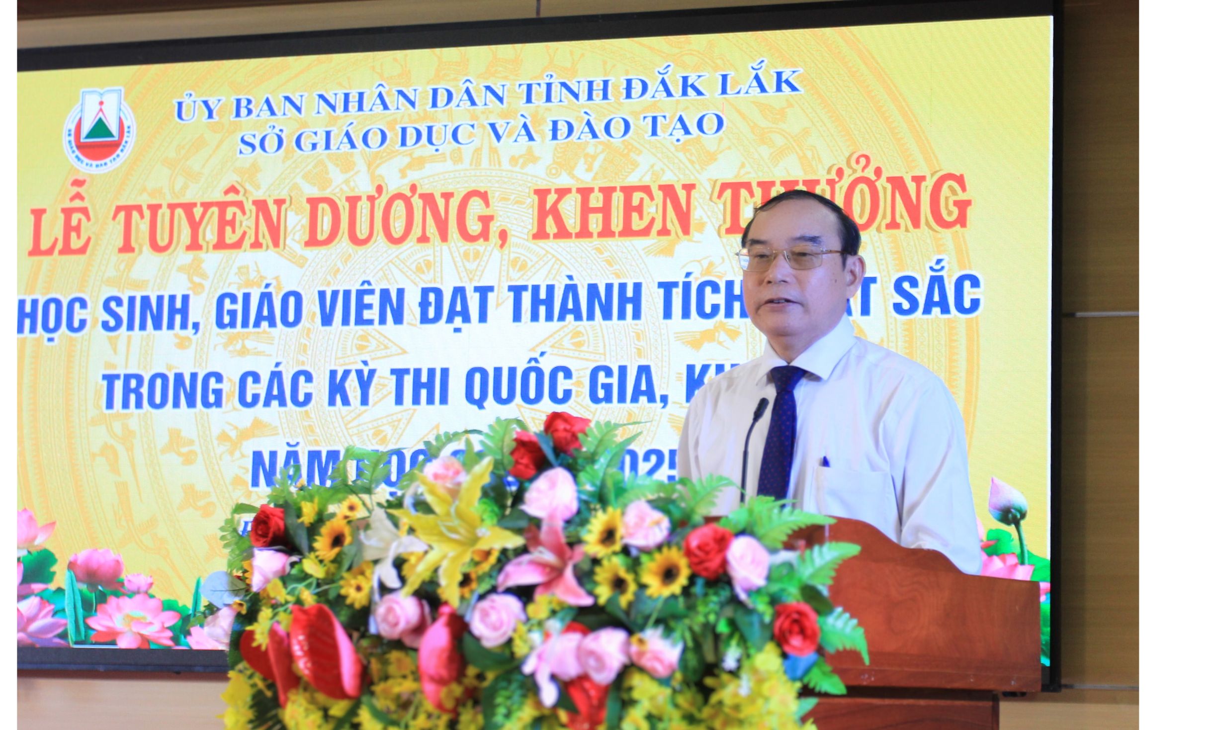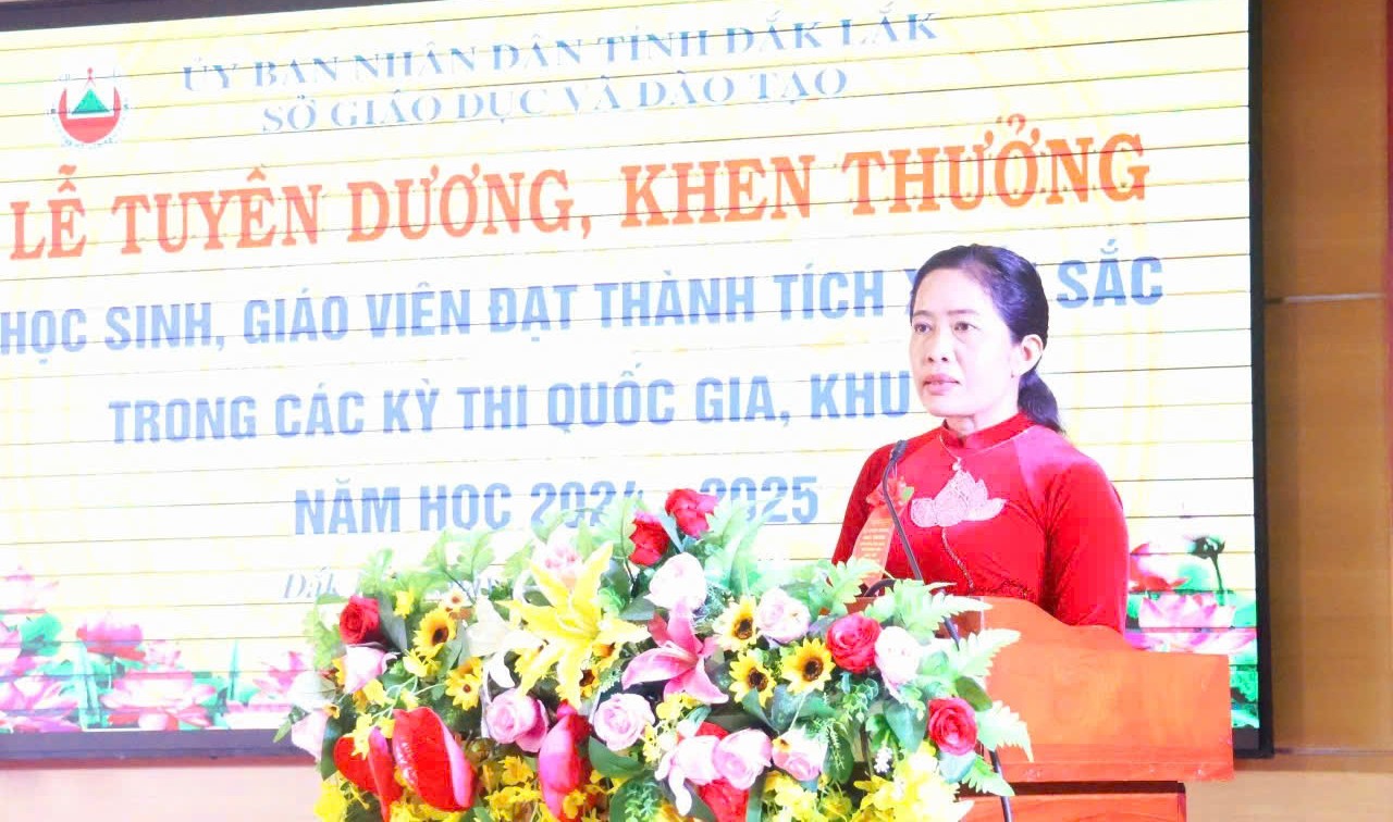 Ngày 19/5/2025, Sở Giáo dục và Đào tạo (GDĐT) tỉnh Đắk Lắk đã long trọng tổ chức Lễ tuyên dương, khen thưởng học sinh và giáo viên đạt thành tích xuất sắc trong các kỳ thi cấp quốc gia, khu vực năm học 2024 - 2025. Đây là sự kiện ý nghĩa, ghi nhận những nỗ lực và thành quả đáng tự hào của ngành giáo dục Đắk Lắk trong năm học vừa qua.