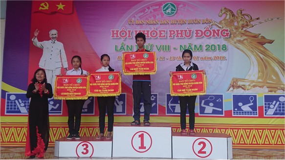 Sau hai ngày thi đấu sôi nổi, với sự tham gia của 805 vận động viên đến từ 24 đoàn của các trường TH, THCS, PTDTNT tranh tài 72 bộ huy chương ở các bộ môn Điền kinh, Cầu lông, Bóng bàn, Đá cầu, Cờ vua, Bắn nỏ, Đẩy gậy, Aerobic. Đây là kỳ Hội khoẻ Phù Đổng có số lượng vận động viên đông nhất từ trước đến nay và có môn thi đấu mới được đưa vào đó là Aerobic. Ngày 12/01/2018, tại Trung tâm Văn hoá huyện Buôn Đôn, Hội khỏe Phù Đổng huyện Buôn Đôn lần thứ VIII, năm 2018 đã tổ chức bế mạc. Kết quả ở khối Tiểu học, giải Nhất toàn đoàn được trao cho trường TH Nguyễn Huệ, giải Nhì trường TH Lương Thế Vinh, giải Ba thuộc về trường TH Nguyễn Trãi. Khối Trung học cơ sở, giải Nhất thuộc về trường THCS Hồ Tùng Mậu, giải Nhì trường THCS Nguyễn Trường Tộ, giải Ba được trao cho trường PTDTNT THCS huyện. Sau Hội khỏe Phù Đổng ở huyện, Phòng GDĐT Buôn Đôn sẽ chọn những vận động viên đạt giải cao ở các bộ môn để tham gia Hội khoẻ Phù Đổng cấp tỉnh sắp tới.