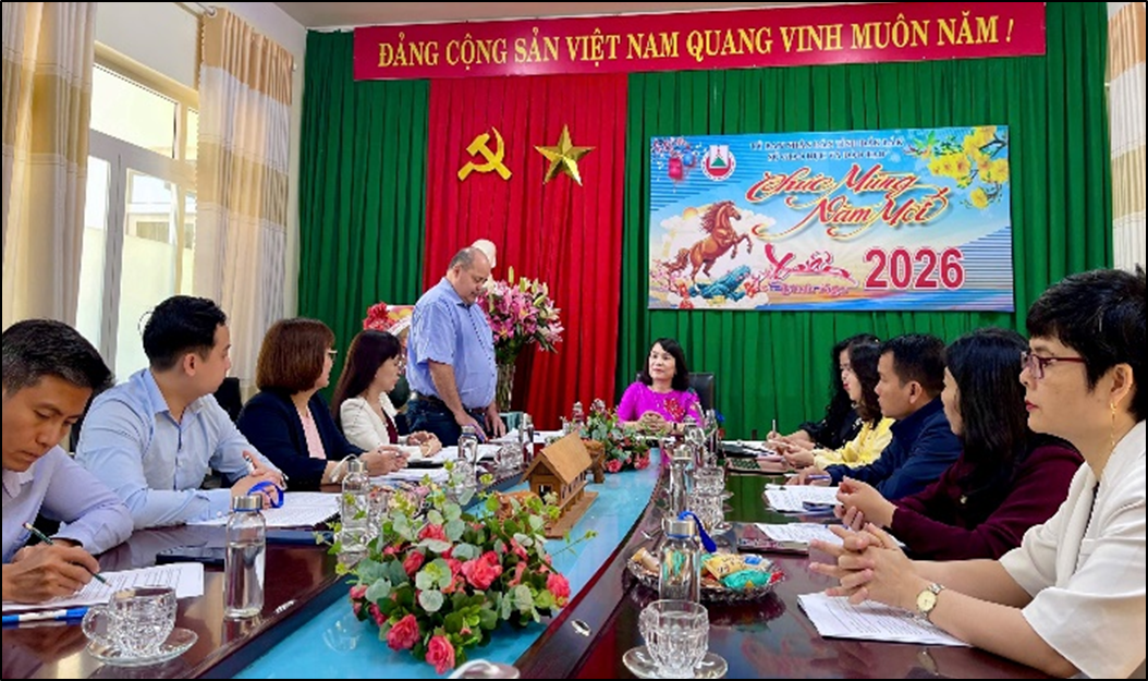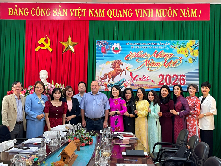 Ngày 25/02/2026, Sở Giáo dục và Đào tạo (GDĐT) và Đoàn công tác của Trường Trung cấp nghề Marie Noel, Pháp và Hiệp hội Cầu nối Việt - Pháp (sau đây gọi tắt là Đoàn công tác) đã có buổi làm việc tại Sở GDĐT tỉnh Đắk Lắk nhằm thảo luận nội dung dự kiến đề xuất xin chủ trương ký kết hợp tác giáo dục quốc tế và trao đổi định hướng hợp tác, chuẩn bị các bước tiếp theo để tiến hành thủ tục xin chủ trương ký kết hợp tác chính thức theo đúng quy định hiện hành.
