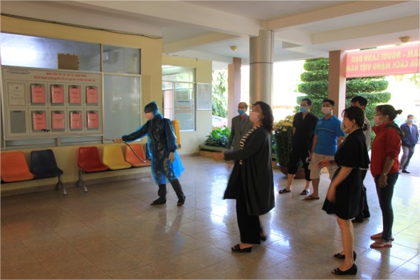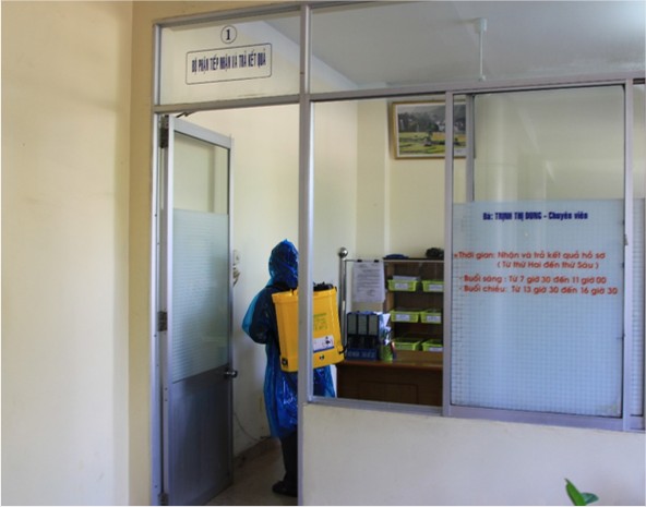 Phun khử khuẩn tại bộ phận tiếp nhận và trả kết quả (Một cửa)